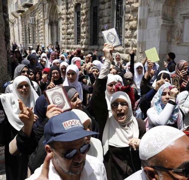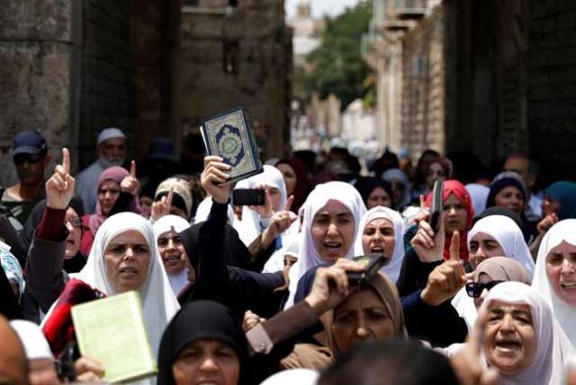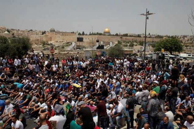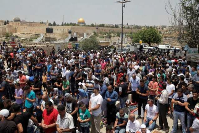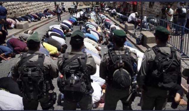 Batı Şeria'daki Filistinliler, Mescid-i Aksa'daki metal arama dedektörü uygulamasına tepki göstermek için cuma namazlarını kontrol noktalarına yakın cadde ve sokaklarda kılmış, ardından İsrail'in ihlallerini protesto etmişti.