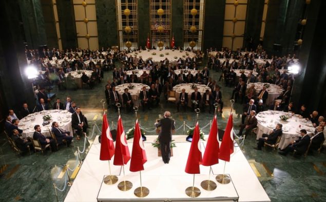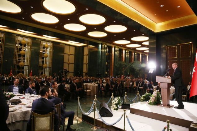 Cumhurbaşkanı Recep Tayyip Erdoğan, Cumhurbaşkanlığı Külliyesi'nde farklı meslek gruplarından esnafla iftar sofrasında bir araya geldi.