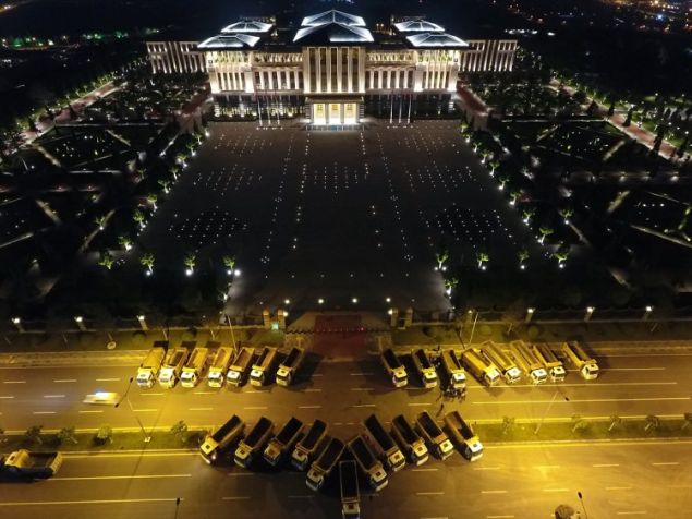 Külliye önüne park eden kamyonlar 15 Temmuz'u hatırlattı