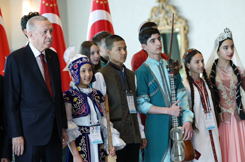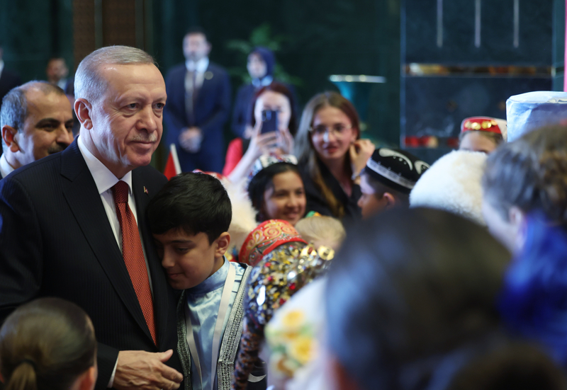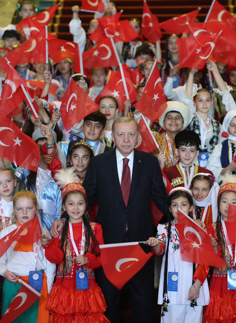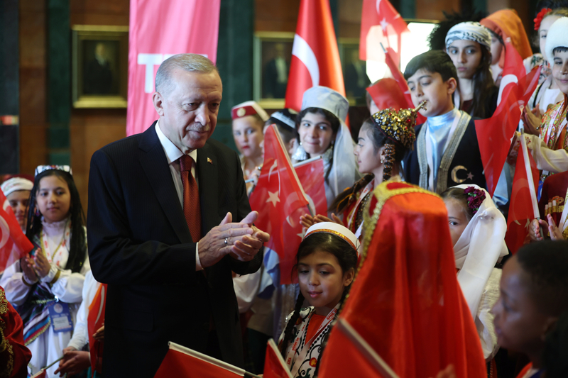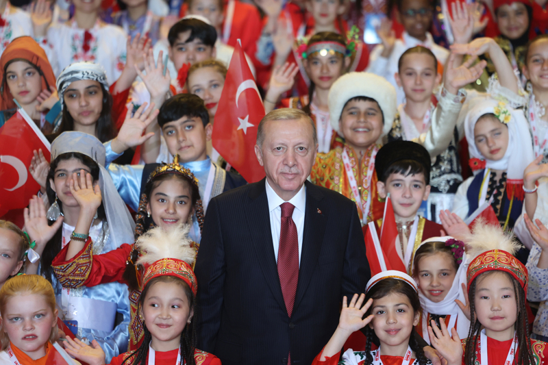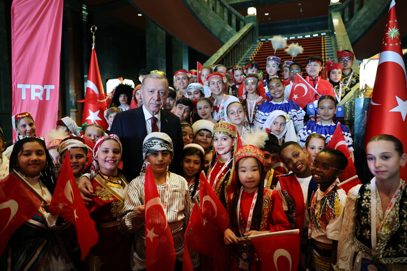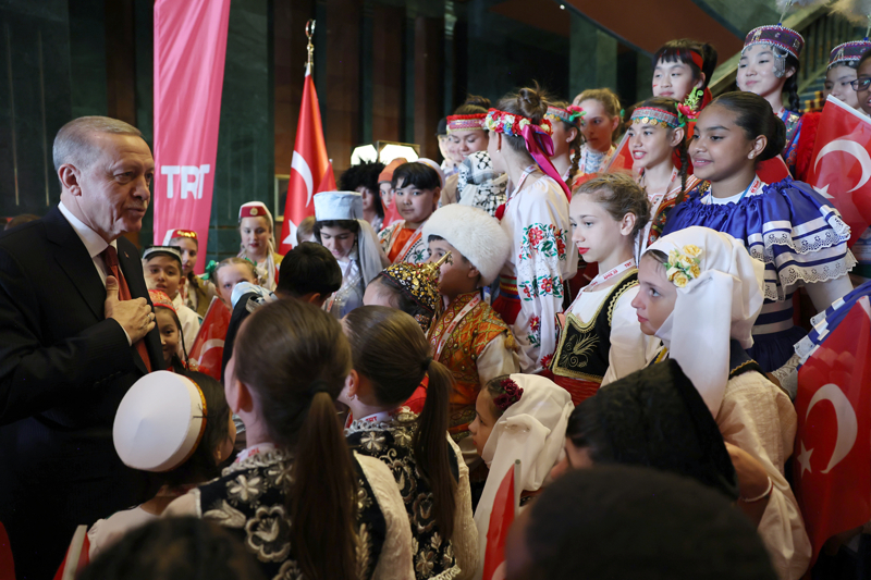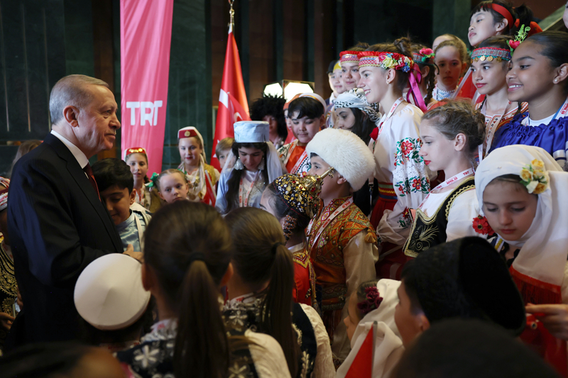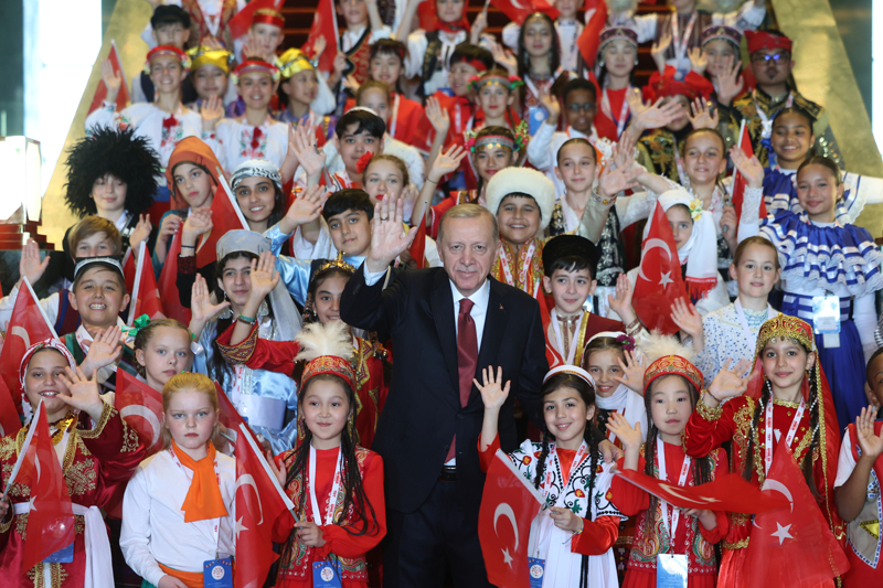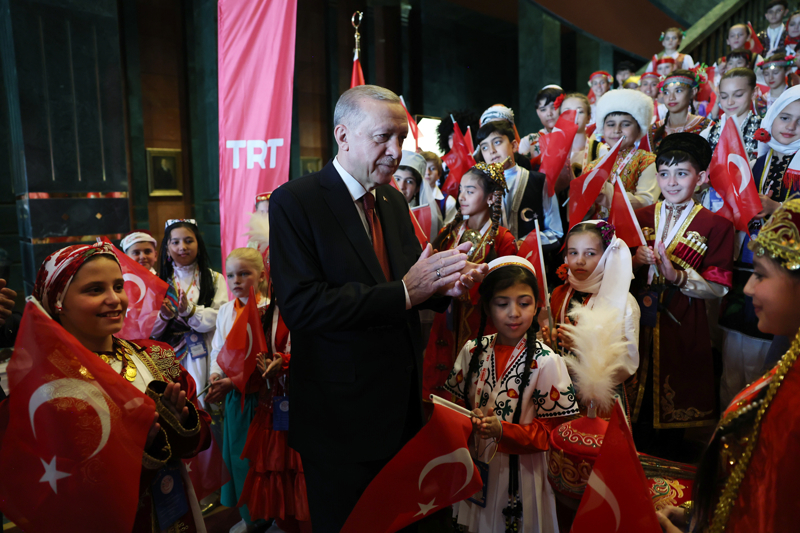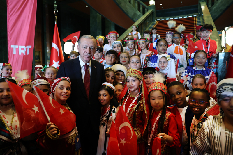 Cumhurbaşkanı Recep Tayyip Erdoğan, 23 Nisan Ulusal Egemenlik ve Çocuk Bayramı dolayısıyla Cumhurbaşkanlığı Külliyesi'nde Türk Dünyası Çocukları ve TRT Çocuk Şenliği Konuk Çocukları ile bir araya geldi.