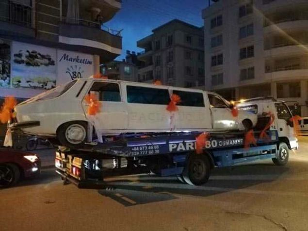 Tüm imkansızlıklara rağmen 3 günde limuzin görünümüne kavuşan Renault 12 Toros marka otomobil düğün günü gelin arabası olarak itinayla süslendi. Ancak otomobilin trafiğe çıkmasına izin verilmeyince çekici çağrılarak gelin arabası olarak süslenen Toros limuzin çekiciye yüklendi. Çekiciye yüklenen otomobil düğünün yapılacağı alana getirildi.