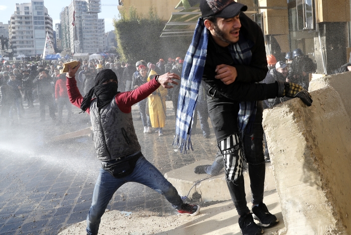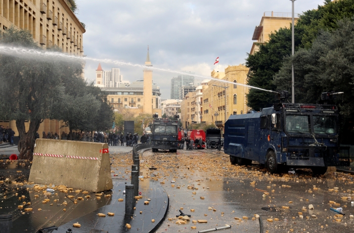 Lübnan güvenlik güçleri, Başkent Beyrut'ta meclis binasına açılan yollarda toplanan göstericilere tazyikli su ve biber gazıyla müdahale etti.