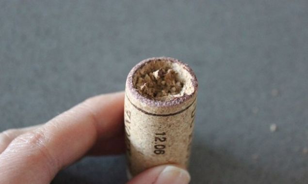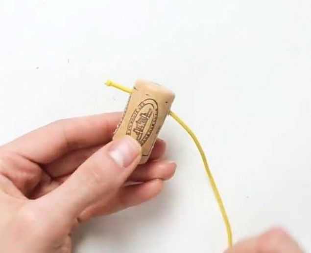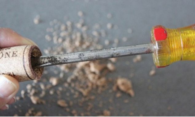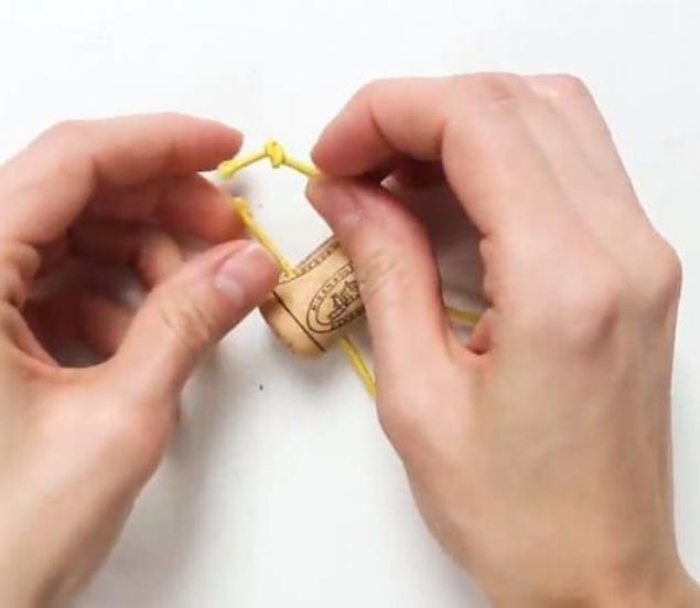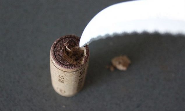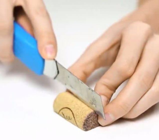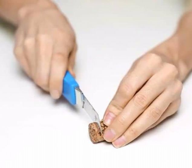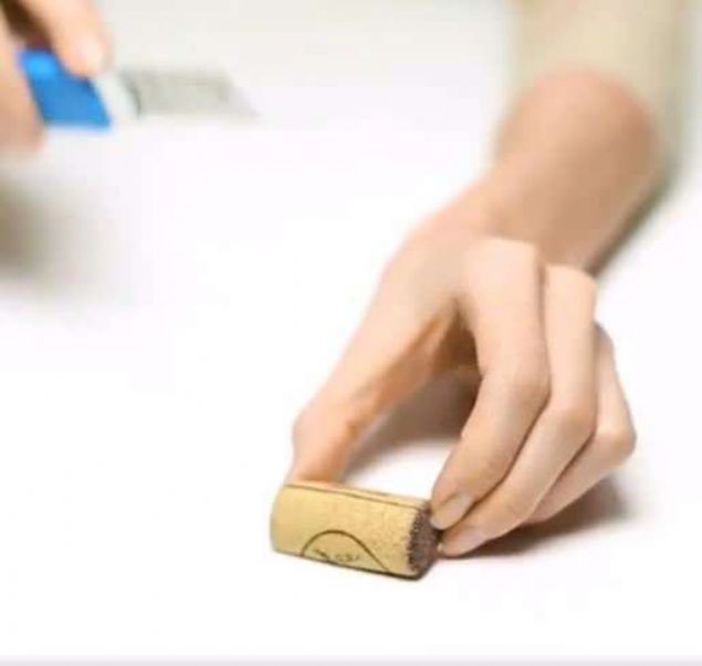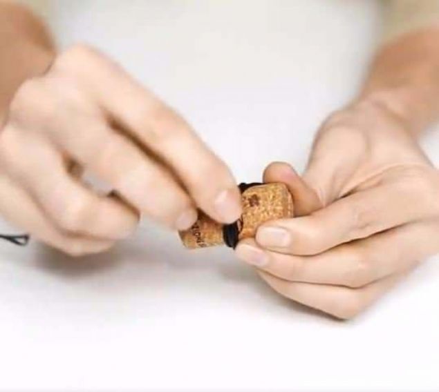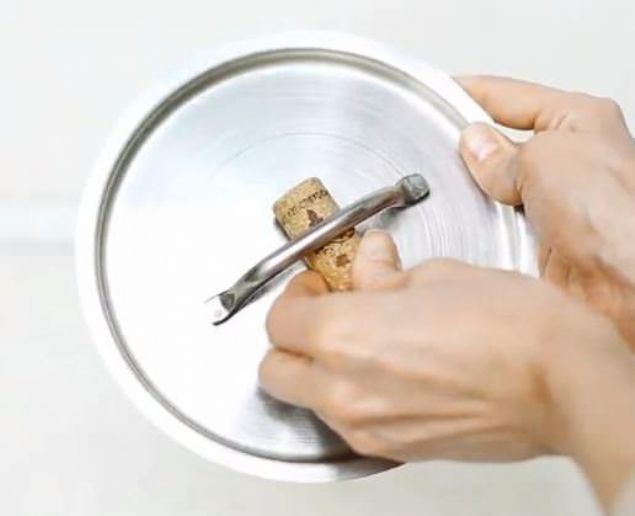 Sıcak bir tencerede el yakmamak için bu şekilde mantarı kullandı.