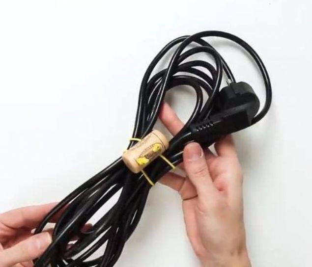 Dağınık kabloları toparlamak içn lastikle bağladı.