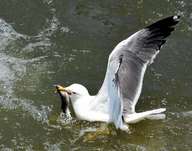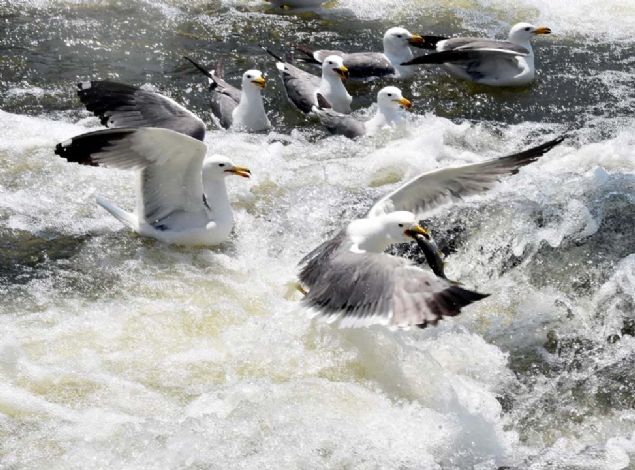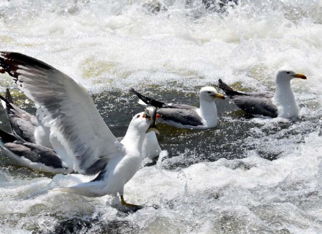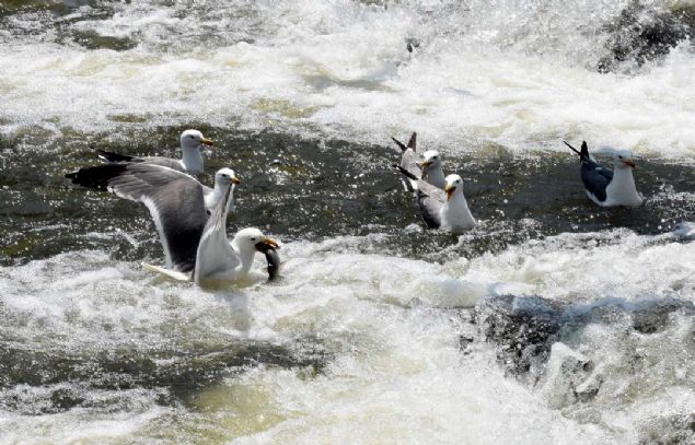 Balık göçünü fırsat bilen martılar ise göç süresi boyunca derelerde inci kefallerini avlayabilmek için nöbet tutuyor.