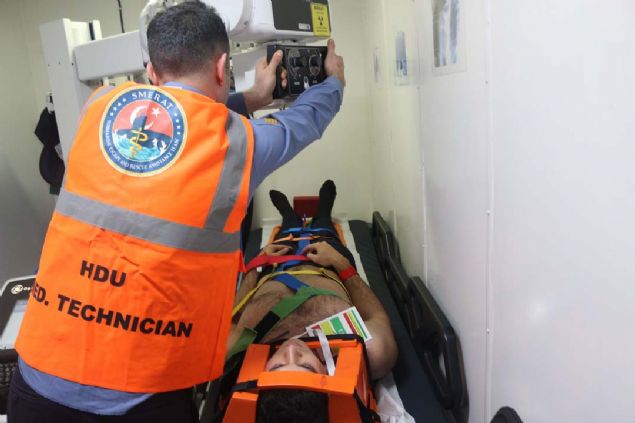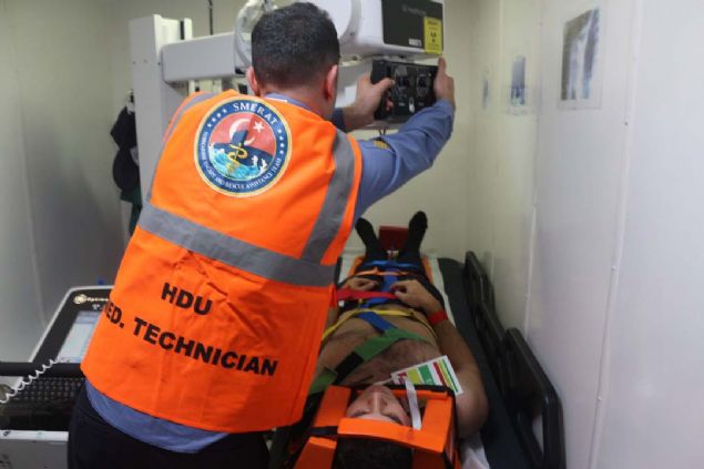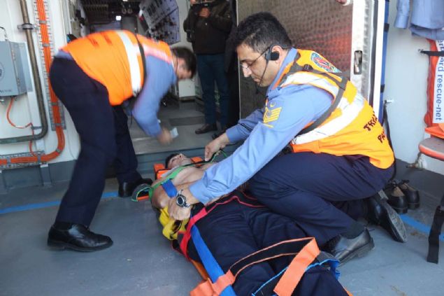 Tatbikat kapsamında bölgeye hava yolu ile intikal eden Denizaltı Tahliye ve Kurtarma Yardım Timi, TCG Alemdar üzerinde tıbbi triyaj ve tedavi alanları, hasta yoğun bakım ünitesi ile basınç odası alanlarını donattı.