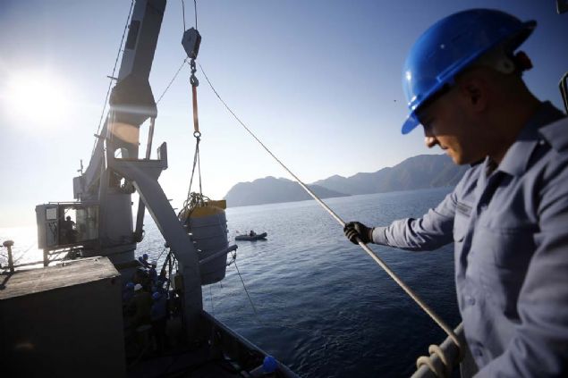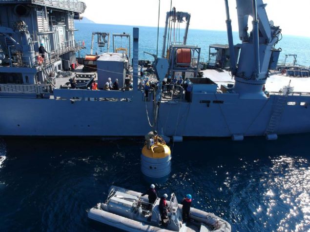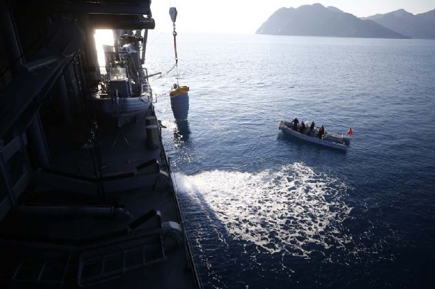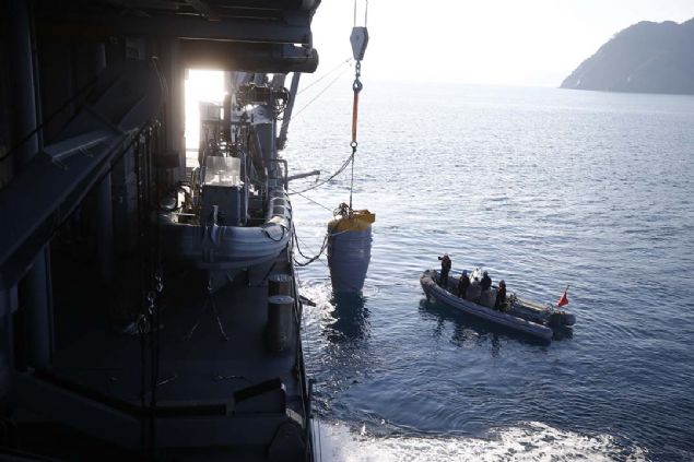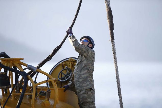 Adanın sahiline yaklaşan gemi ve birliklerin deniz içinde karşılaşabileceği muhtemel bir mayın ya da tehlikeli cisimlerin tespit edilmesi için TCG Edremit Gemisi'nde konuşlu bulunan Hafif Otonom Sualtı Aracı'nda (HOSA) özel görevli dalgıçlarca denize bırakıldı.