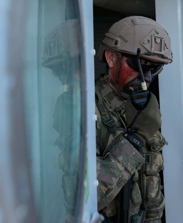 - SAT KOMANDOLARI İNİŞ YAPTI Hazırlık eğitimleri kapsamında Gölcük'teki Poyraz Limanı'ndan asimetrik tehdit altında seyre kalkan TCG Burgazada, senaryo gereği kendisine yaklaşan bir bota ASELSAN yapımı silah sistemleriyle ikaz ve imha atışları gerçekleştirdi.