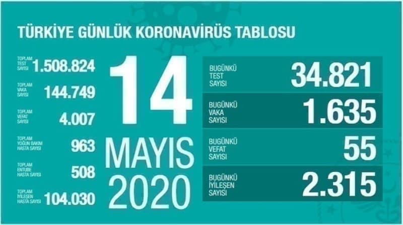 Sağlık Bakanı Fahrettin Koca her gün Twitter hesabından güncel koronavirüs tablosunu yayınlıyor. Türkiye'nin dünkü koronavirüs tablosuna göre vaka sayısı 176.677'ye yükseldi. Koronavirüs sebebiyle toplam 4.792 vatandaşımız hayatını kaybetti. Peki Türkiye koronavirüs tablosunda son durum ne? İşte Mayıs başından itibaren gün gün koronavirüs tablosu...