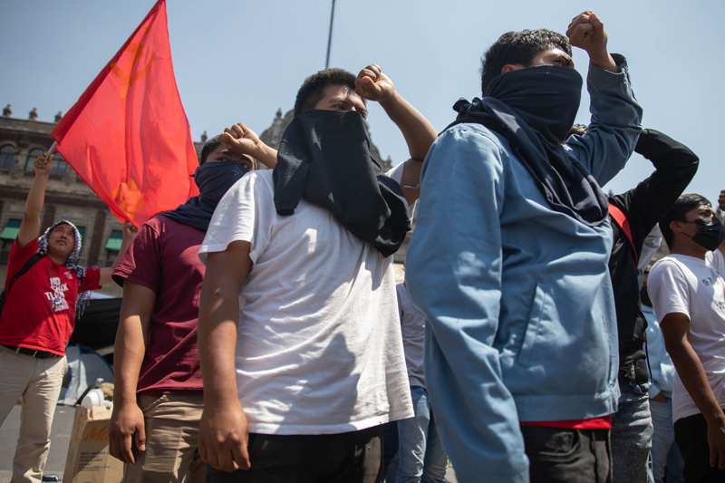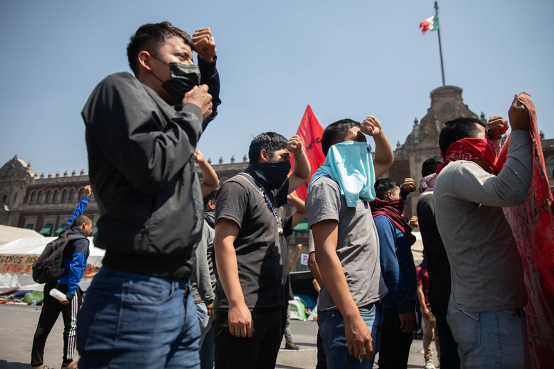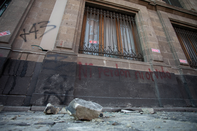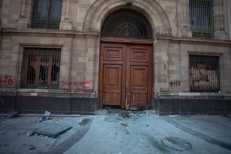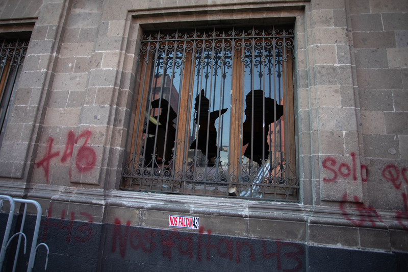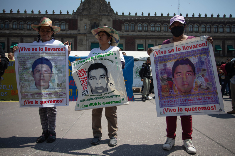 2014 yılında Ayotzinapa'dan otobüsle Meksiko'daki bir protestoya giderken Guerrero eyaletinin Iguala kentinde kaçırılan ve kaybolan 43 öğretmen okulu öğrencisi için adalet talebiyle Meksika'nın başkenti Mexico City'de bir araya gelen Ayotzinapa Kırsal Eğitim Öğretmen Okulu öğrencileri ve kaybolan öğrencilerin yakınları Ulusal Başkanlık Sarayı önünde protesto gösterisi düzenledi.