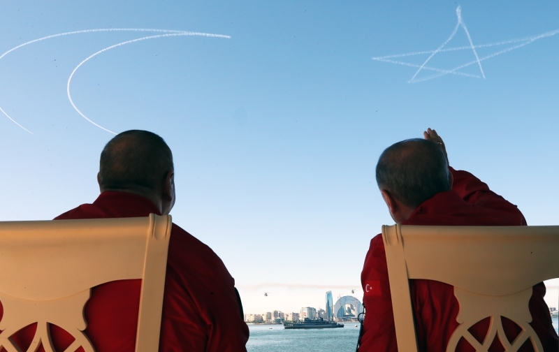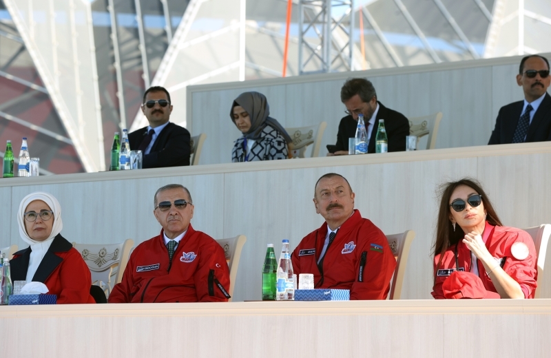 Erdoğan ve Aliyev, Azerbaycan Hava Kuvvetleri, Türk Hava Kuvvetlerine bağlı Türk Yıldızları ve Solo Türk ekibinin akrobasi gösterisini izledi.