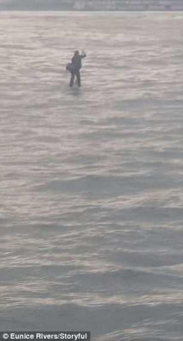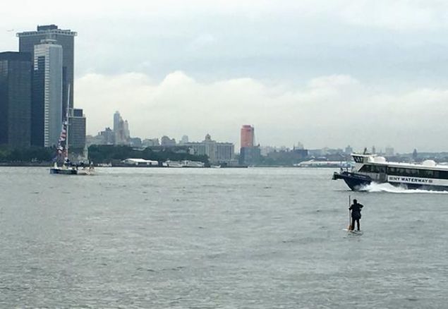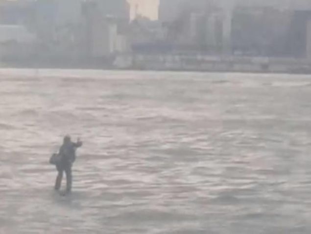 New York’ta Hudson Nehri üzerinde seyahat eden vapur yolcularını şaşırtan bir olay yaşandı. Geçen Perşembe yaşanan olayda, yolcular tarafından, nehrin üstünde giden bir adam videoya kaydedildi.