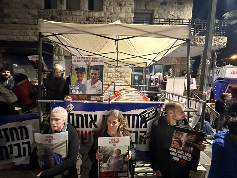 Gazze'deki İsrailli esirlerin yakınları, İsrail Başbakanı Binyamin Netanyahu'nun Batı Kudüs'teki konutunun önüne çadır kurarak protesto düzenledi.
