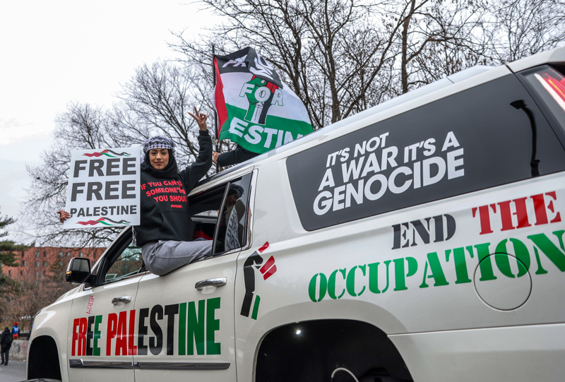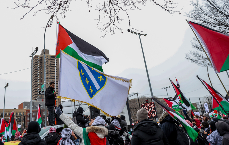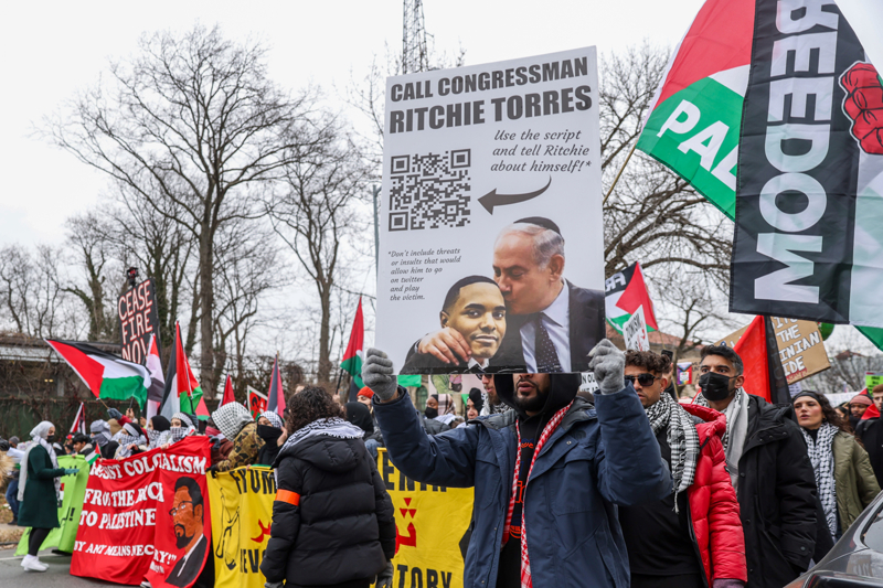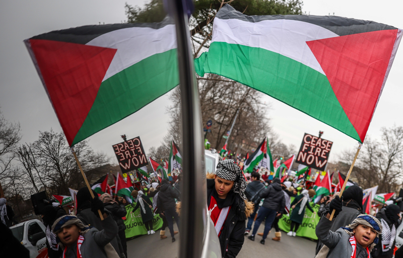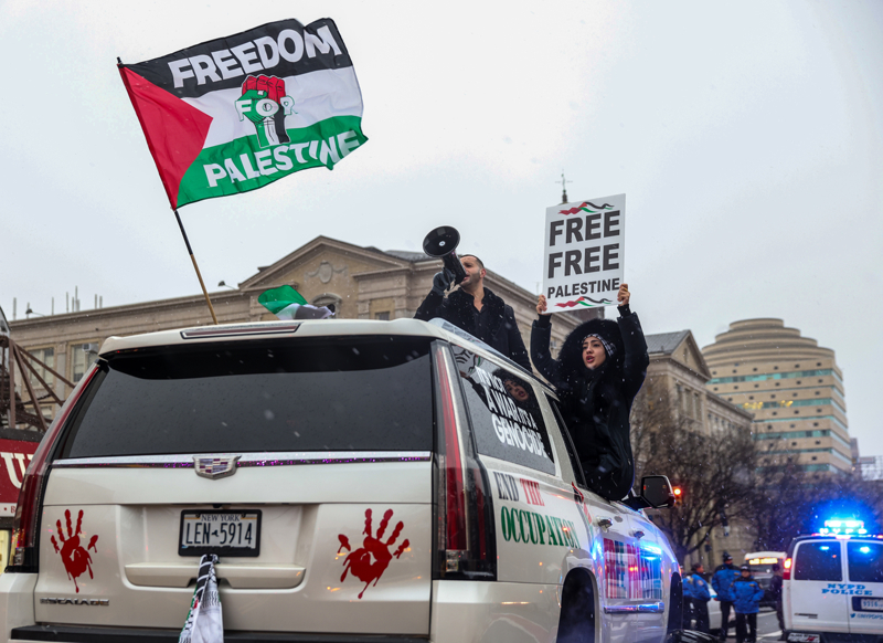 Yürüyüşe katılanlar yüzlerce ABD'li Filistin bayrakları ve pankartlar taşıdı.