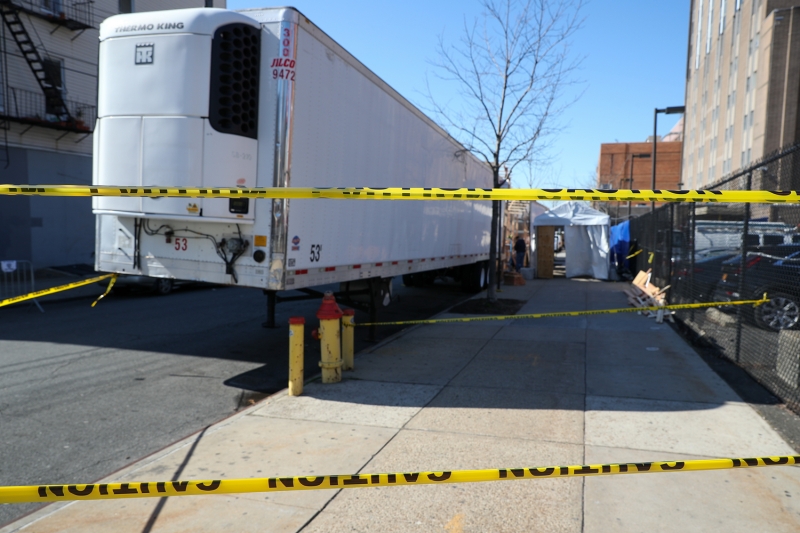 New York'ta yeni tip koronavirüs (Kovid-19) salgını nedeniyle hayatını kaybedenlerin sayısı artarken, bazı cenazeler Wyckoff Heights Hastanesi yakınındaki konteyner morglara kaldırılıyor.