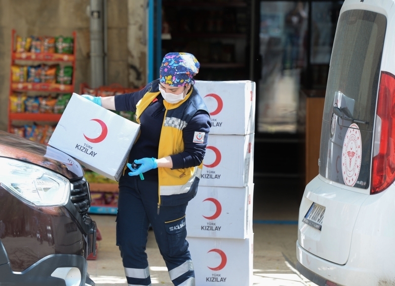 Yeni tip koronavirüs (Kovid-19) salgını nedeniyle meslek hayatlarının en yoğun dönemlerini geçiren Kilis 112 Acil Servis personeli Dr. Aysun Çakır, Yahya Havan, Medine Güney, Ayşe Koçyiğit ve Emrah Oğultekin, tespit ettikleri ihtiyaç sahibi ailelerin ihtiyaçlarını karşılıyor.