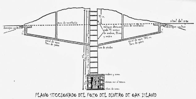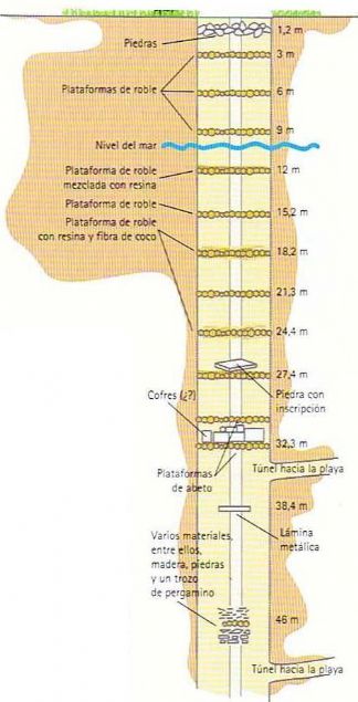 Çalışmalar 45 yıl boyunca durur. Bu aksiliğin bir Bubi Tuzağı olduğu düşünülür. Aynı zamanda yaklaşık 150 metrelik bir su yolu da keşfedilir. Fakat su ne kadar çabuk boşaltılsa da, deniz suyu gelip yine boşluğu doldurur.