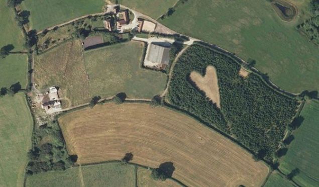 Andy Collett ismindeki bir adam balonla gökyüzüne doğru yolculuk yaparken aşağıya baktığında o kalp şeklini gördü. Çektiği fotoğraflar ise hızla yayıldı.