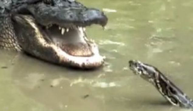 İşte vahşi doğanın en korkutucu hayvanlarından olan timsah ve piton arasında yaşanan ölümcül mücadele...