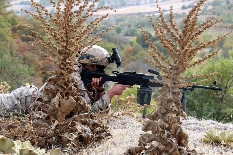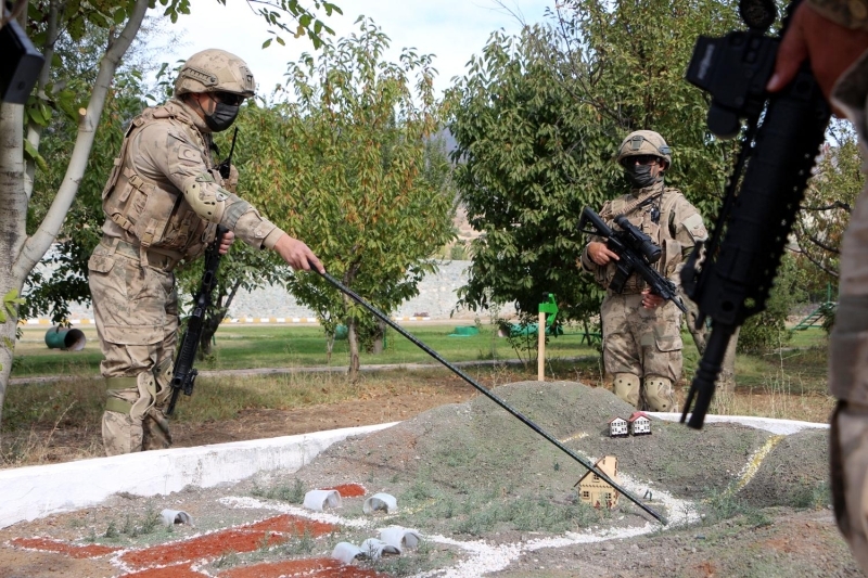 Komandoların operasyon bölgesine intikalinde, sinyal kesici zırhlı kirpi aracı ve arama tarama köpeği ile yolda el yapımı patlayıcı (EYP) araması yapıldı.