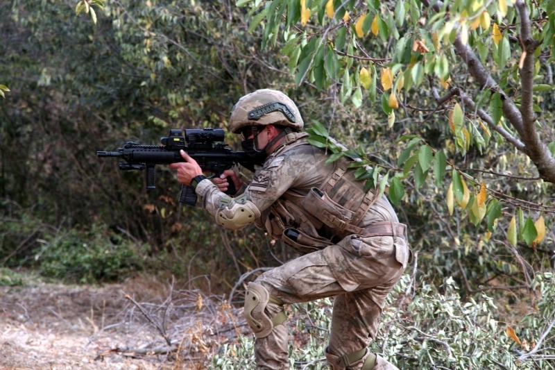 Aselsan'ın ürettiği dronsavarın da kullanıldığı tatbikatta, komandolar baskın yapacakları evin çevresine sızıp bölgeyi kontrol altına aldı.
