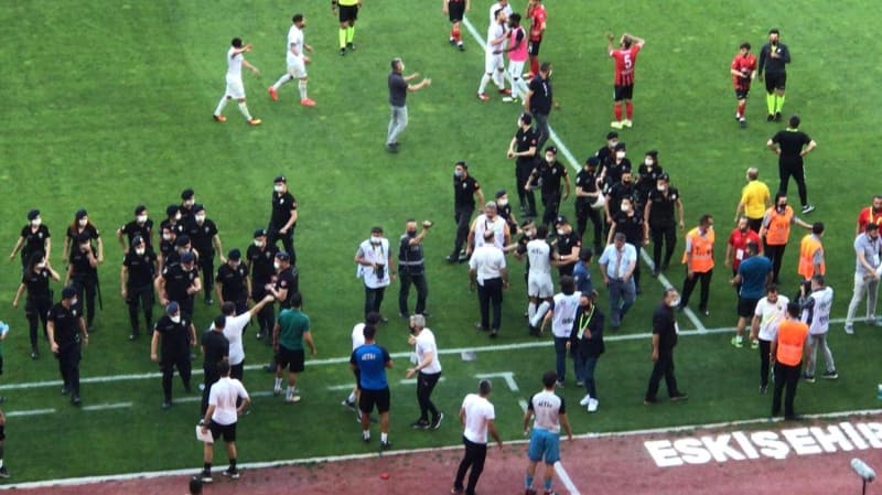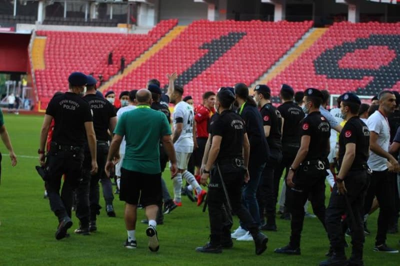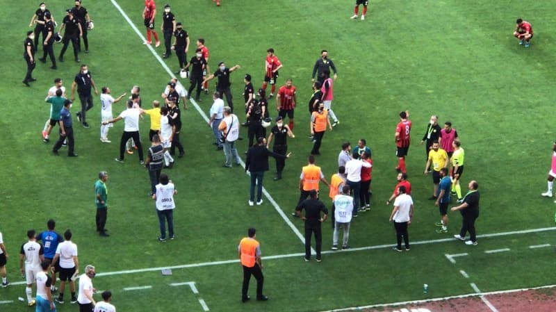 Öte yandan polis, olayın daha çok büyümemesi için iki takım yedek kulübeleri arasına set çekerek, oyuncular soyunma odasına girene kadar önlem aldı.