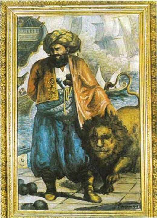 Gittiği her yere zincir tasmasından tuttuğu aslanıyla beraber gidiyor ve ele geçirdiği gemilere aslanıyla beraber çıkıyordu.
