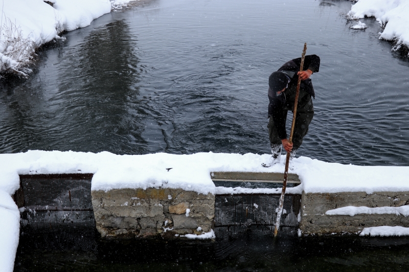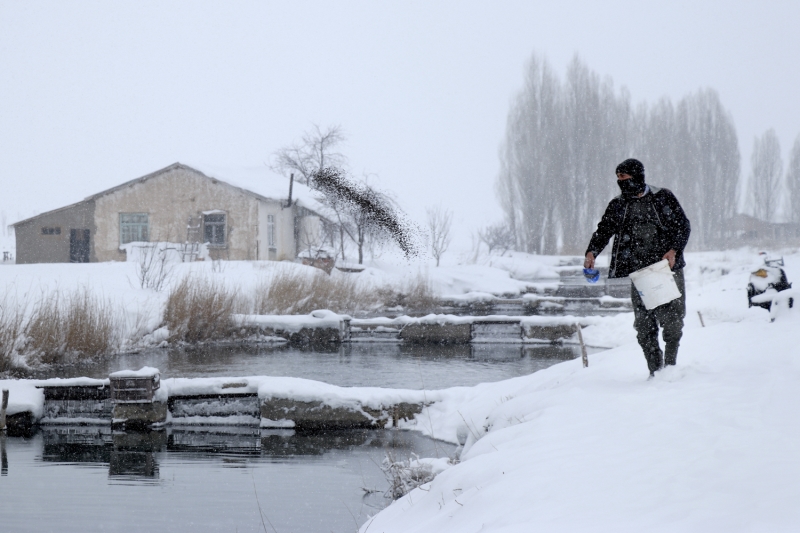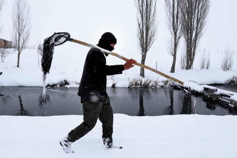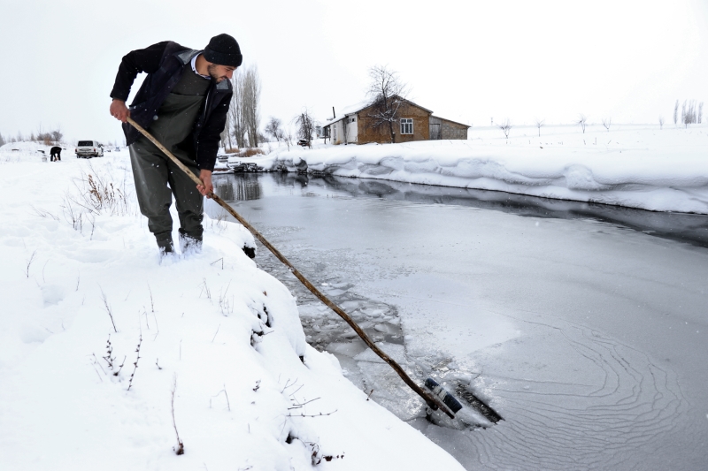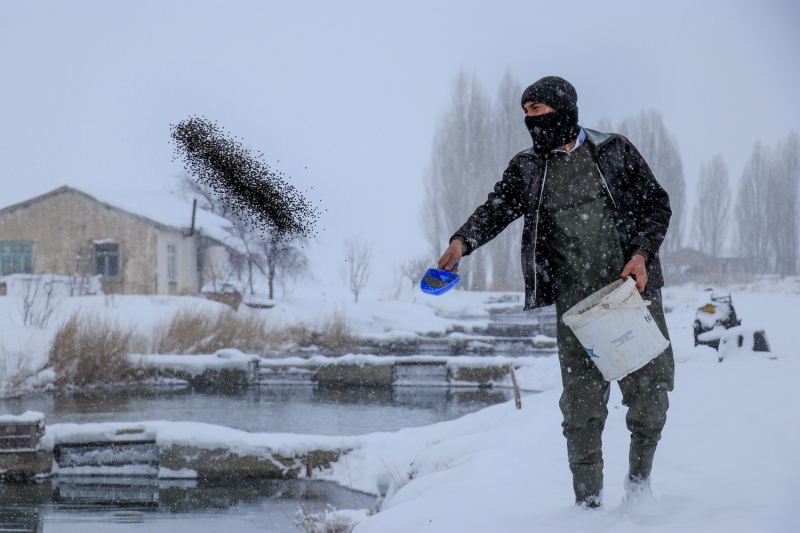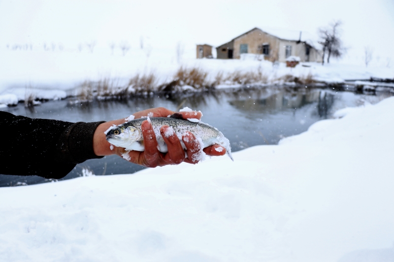Konya Ovası'nda karada kurdukları balık çiftliklerinde alabalık yetiştiren üreticiler, hava sıcaklığının sıfırın altında 20 dereceye kadar düştüğü bölgede, kar ve dondurucu soğuğa rağmen ekmeğini kazanmanın mücadelesini veriyor.
