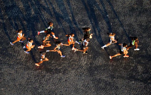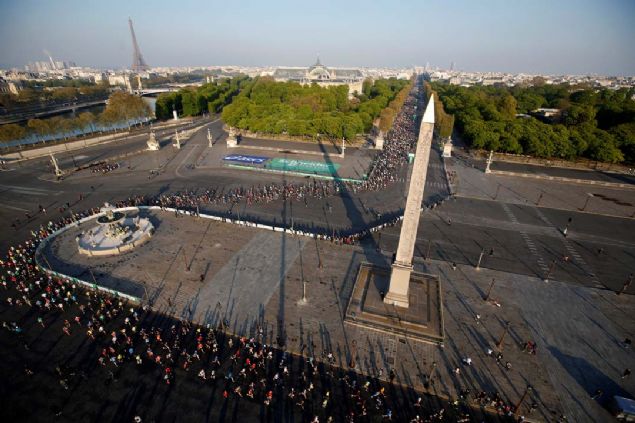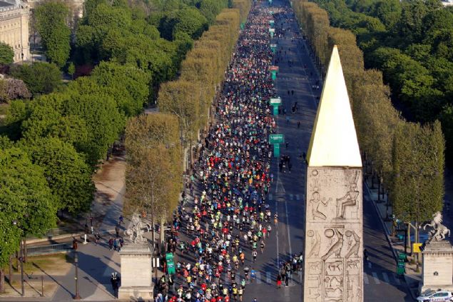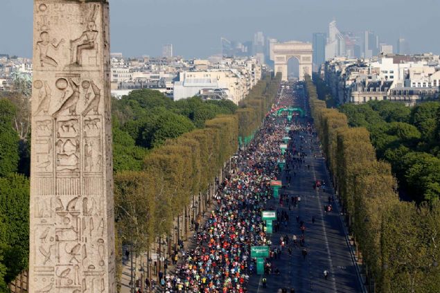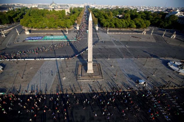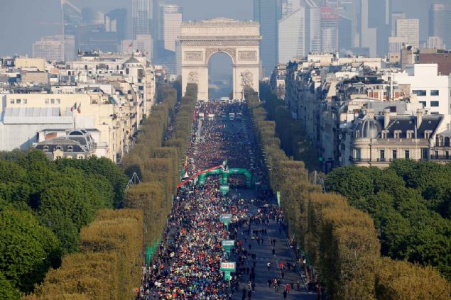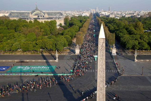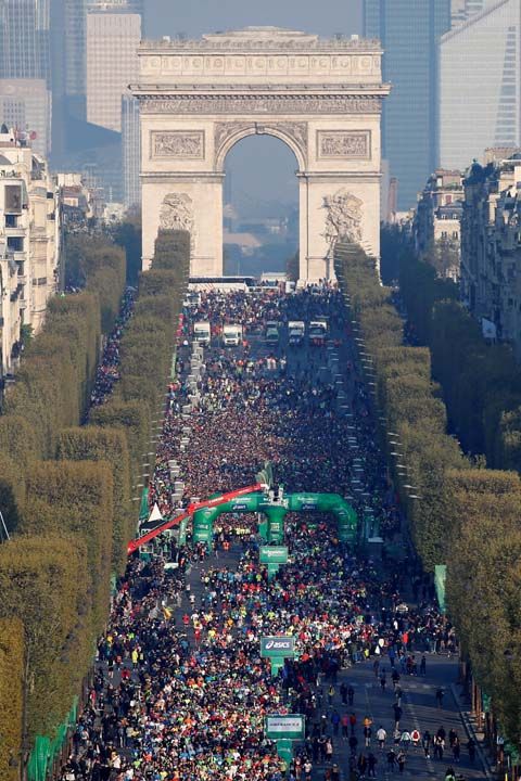 Dünyanın en ünlü caddelerinden biri olan Les Champs Elysées'de başlayan maratona 40.000'den fazla koşucu katılıyor...