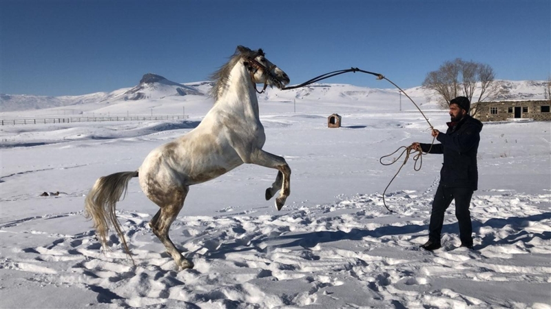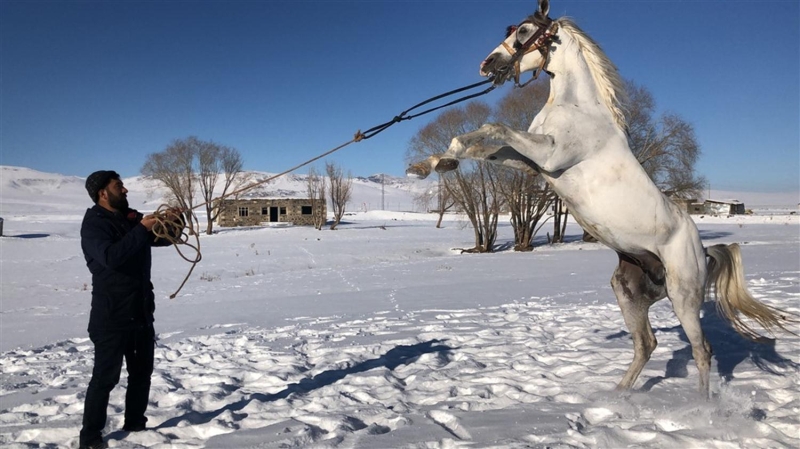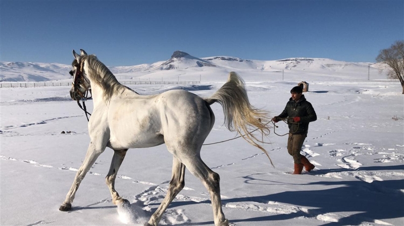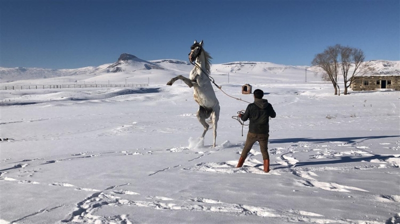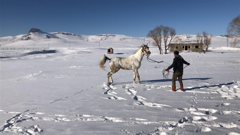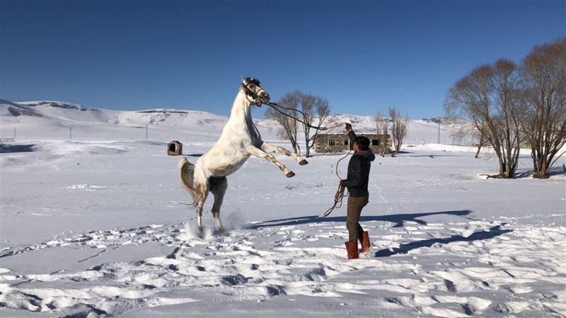 Kulüp Başkanı Selçuk Başkaya, atının karda oyun oynamayı çok sevdiğini ve böylelikle rahatladığını belirtti.