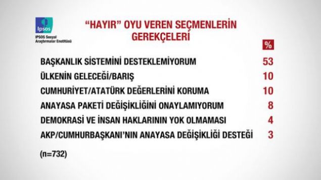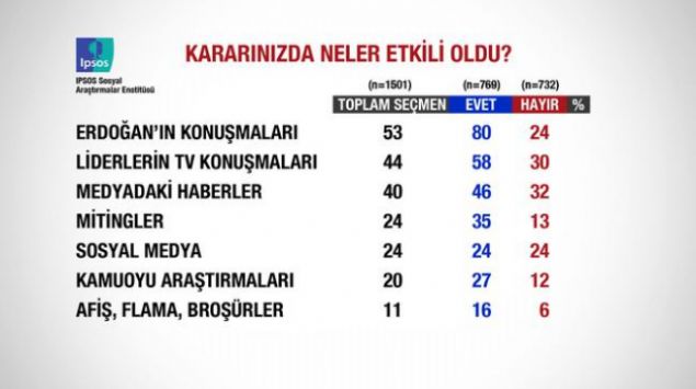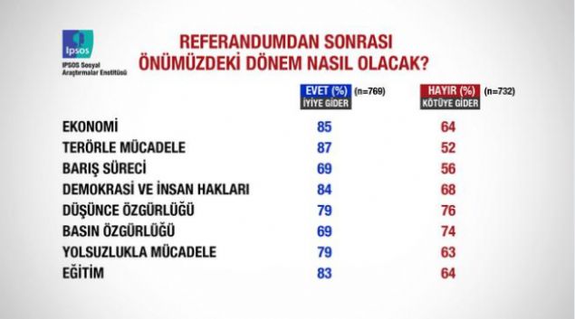 Referandum sonrası yapılan ilk ankette vatandaşlara 'Bu sonucu referandumdan önce bilseydiniz oy tercihiniz ne olurdu diye soruldu, sonuçlar 'Evet'in %58 çıkacağını gösterdi. İşte araştırma şirketi IPSOS'un yaptığı anketin diğer sonuçları.