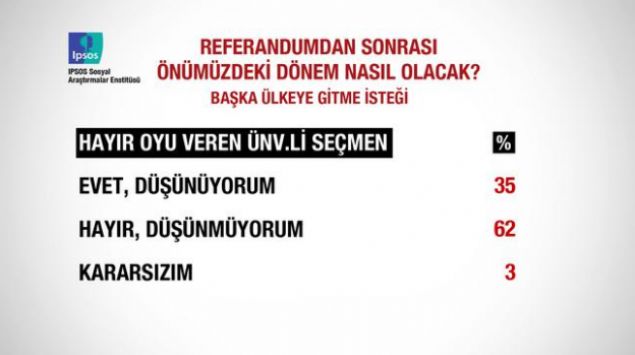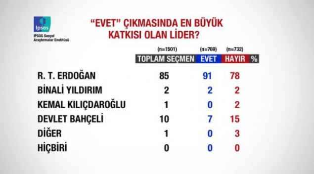 Referandum sonrası yapılan ilk ankette vatandaşlara 'Bu sonucu referandumdan önce bilseydiniz oy tercihiniz ne olurdu diye soruldu, sonuçlar 'Evet'in %58 çıkacağını gösterdi. İşte araştırma şirketi IPSOS'un referandum sonrası anket sonuçları