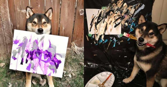 Kanada'da yaşayan Kenny Au ve Denise Lo çiftinin 5 yaşındaki köpeği, fırçayla resim yapma becerisini geliştirince ortaya çıkan tablolara sosyal medyadan beğeni yağdı.