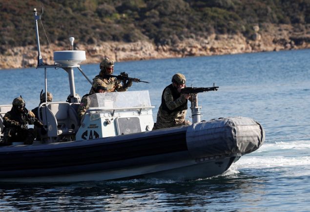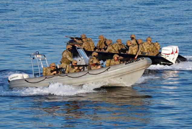 Bu gemide bulunan SAS ve SAT timleri de sahil gerisi keşif harekatı başlattı.