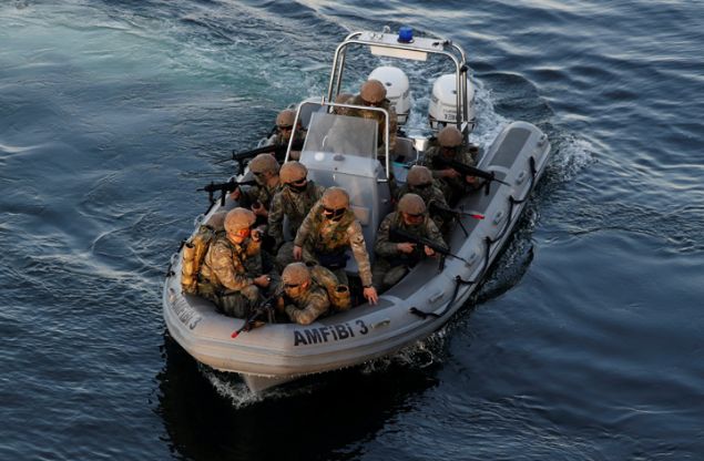 Deniz Kuvvetleri Komutanlığı tarafından Cumhuriyet tarihinde ilk defa ana vatanı çevreleyen üç denizde 103 geminin katılımıyla eş zamanlı gerçekleştirilen 'Mavi Vatan 2019 Tatbikatı'nın Foça bölümünde senaryo gereği düşman toprağı olan Hekim Adası'na amfibi çıkarma harekatı başladı. Haber ajansı Reuters da tatbikatı dünyaya bu fotoğraflarla duyurdu.
