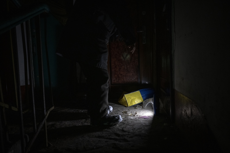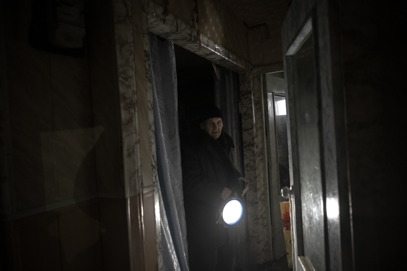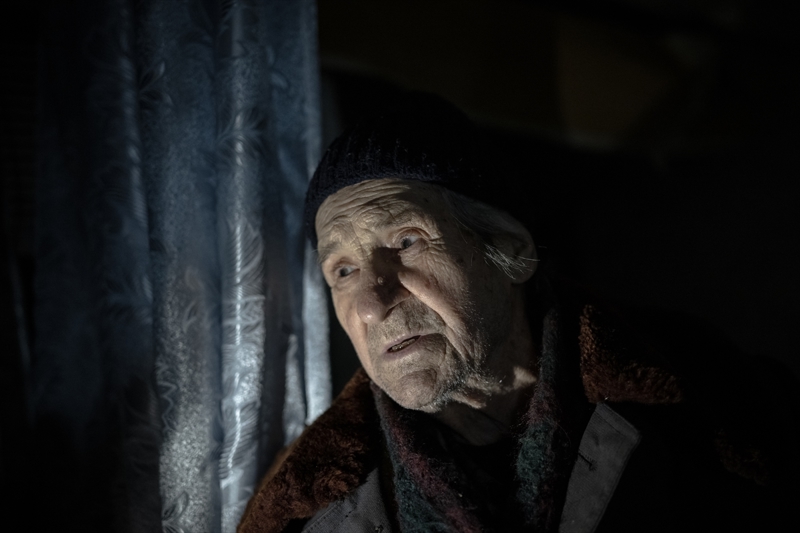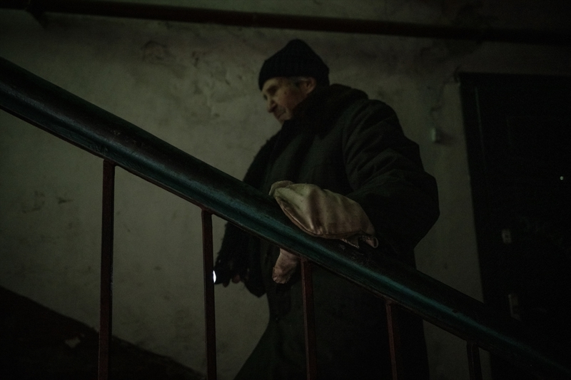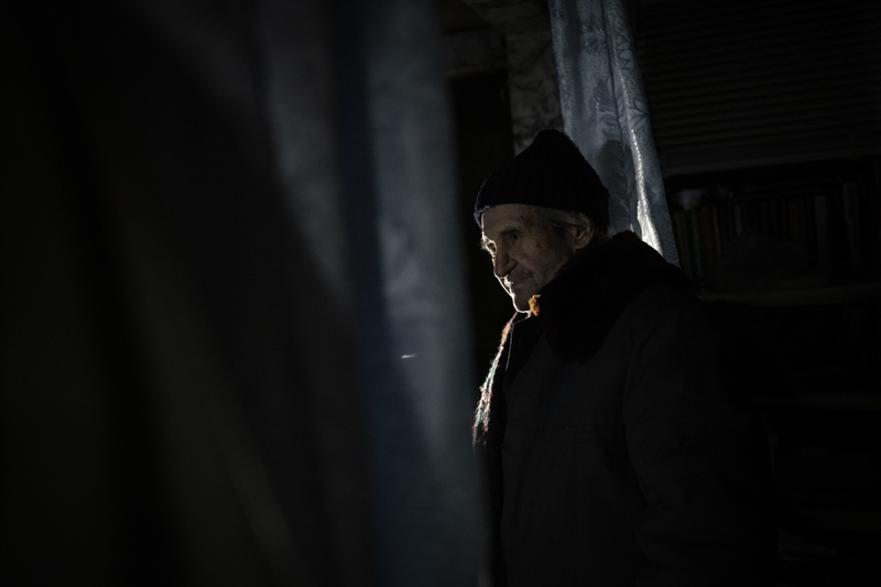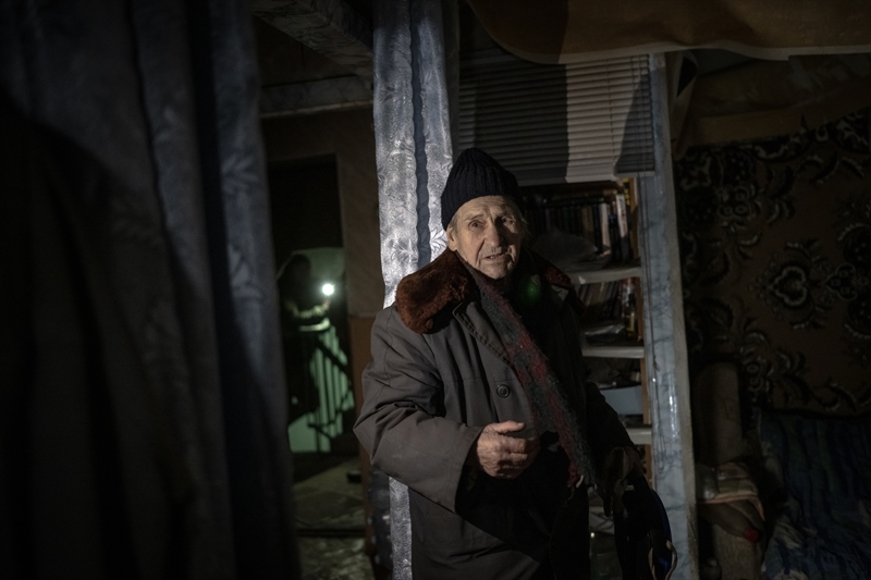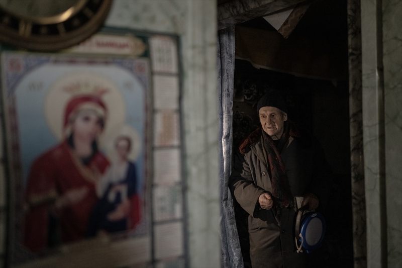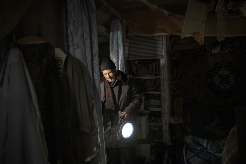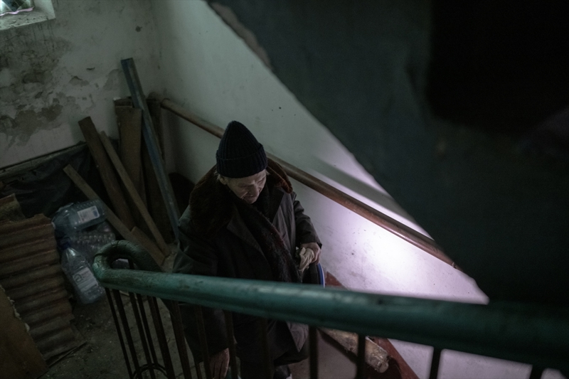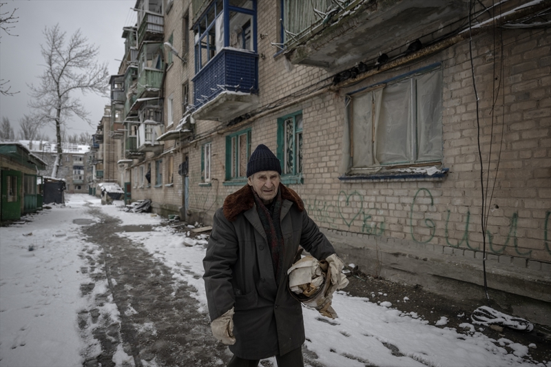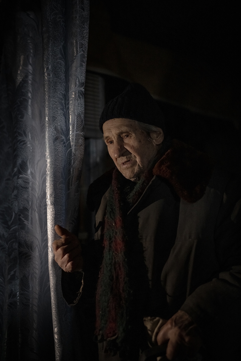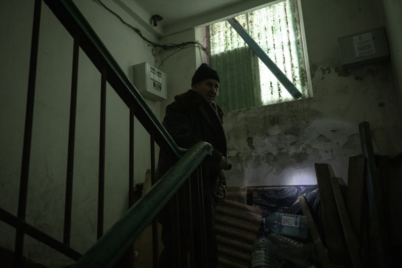 Çasiv Yar'da topçu saldırıları nedeniyle hasar görmüş bir apartmanda tek başına yaşayan 84 yaşındaki Anatoliy, oldukça ağır şartlarda ayakta kalmaya çalıştığını belirtti.