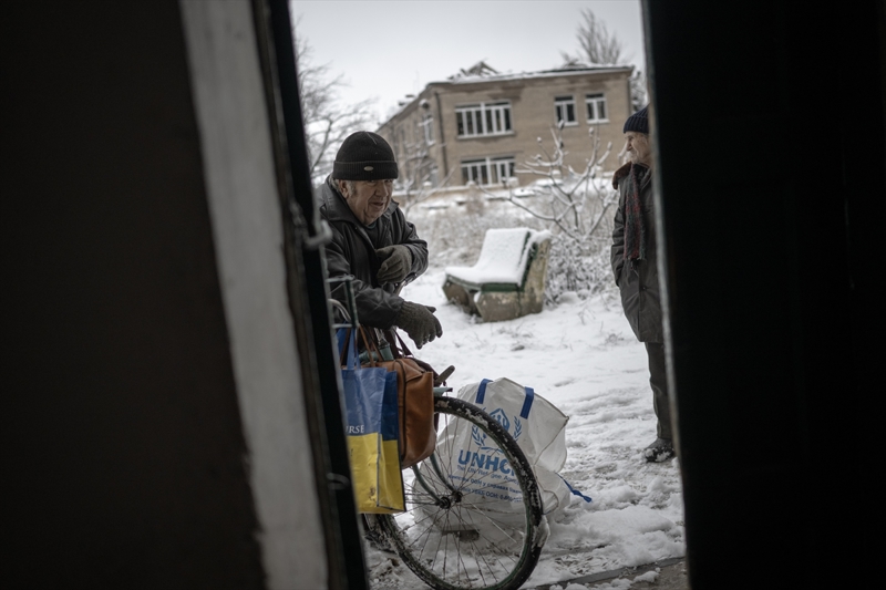 Dağıtılan insani yardımı alan 63 yaşındaki Nataliya, AA muhabirine gelişmeleri anlattı.