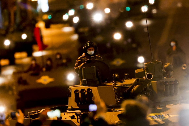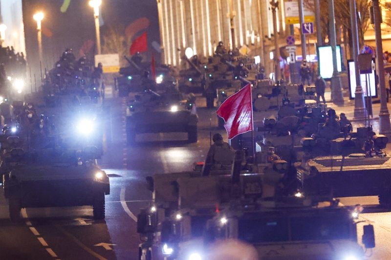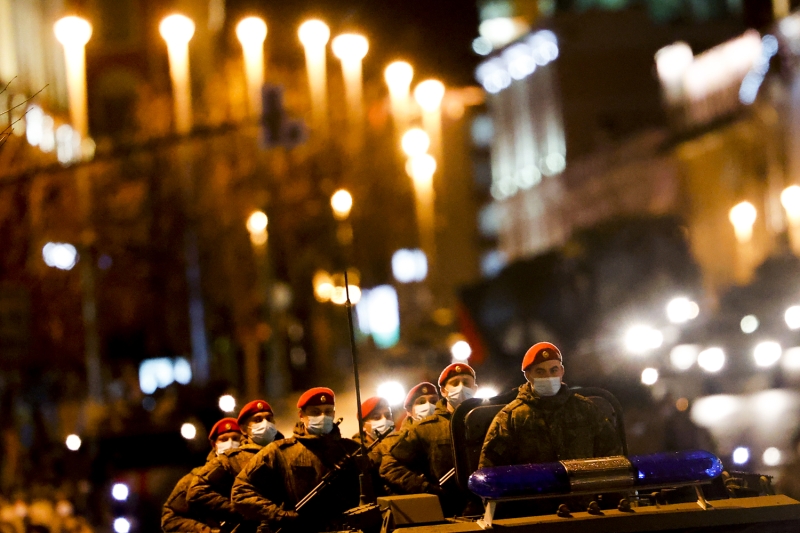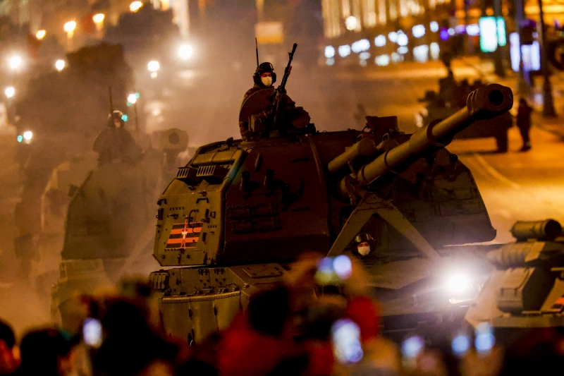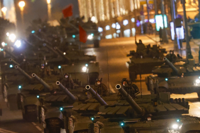 Başkent Moskova'da 9 Mayıs'ta yapılacak Zafer Bayramı askeri geçit töreninin gece provası yapıldı.