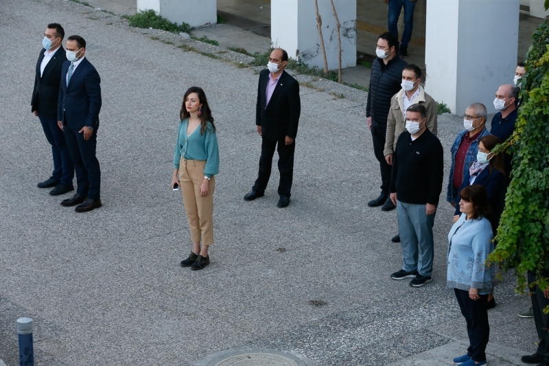 Saat 9'u 5 geçe sirenlerin çalmaya başlamasıyla vatandaşlar 2 dakika saygı duruşunda bulundu.