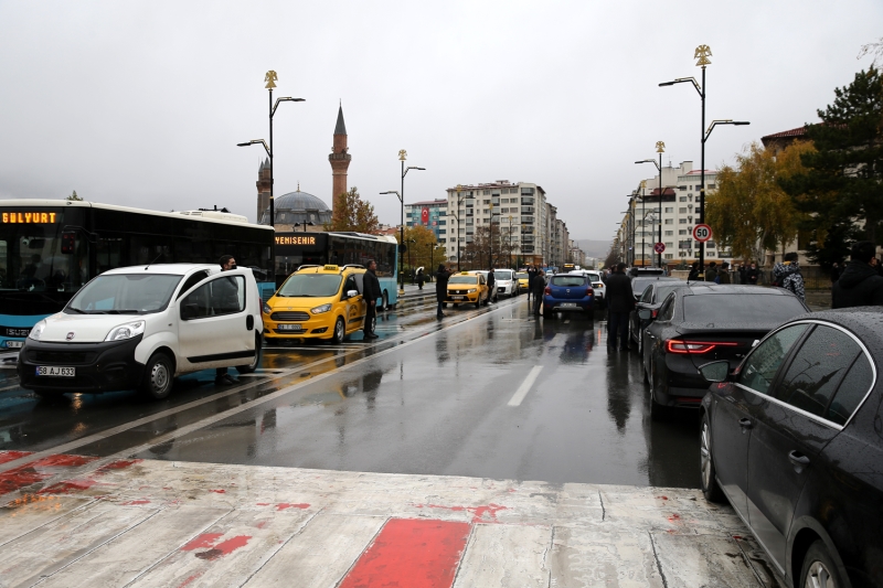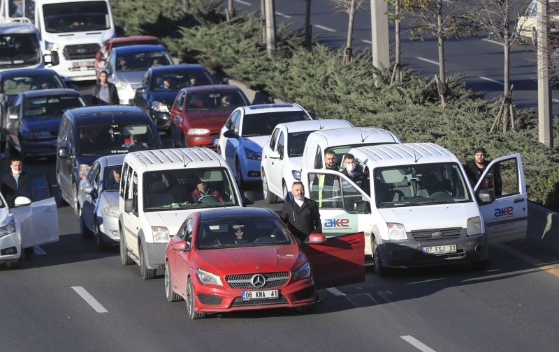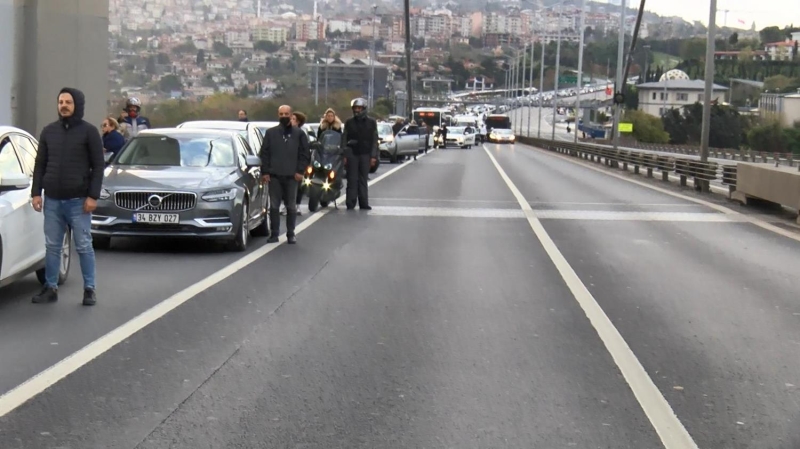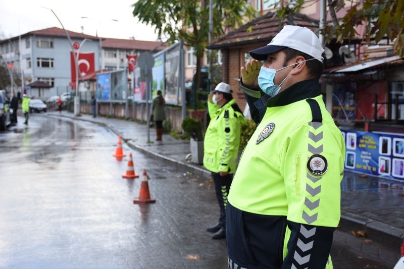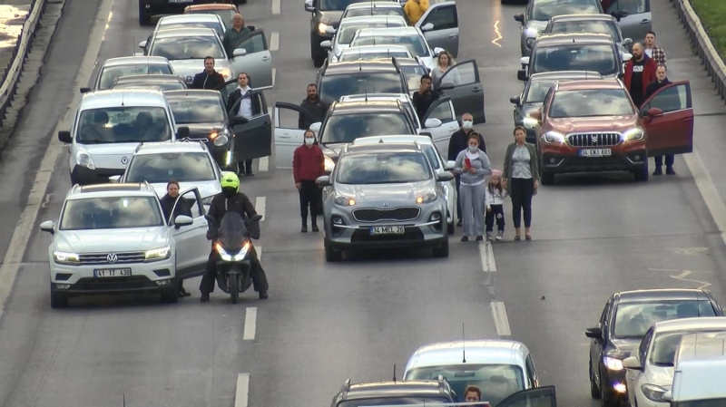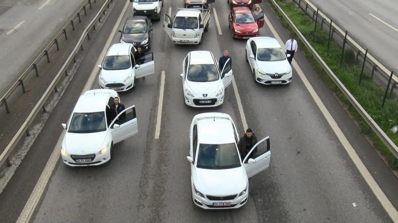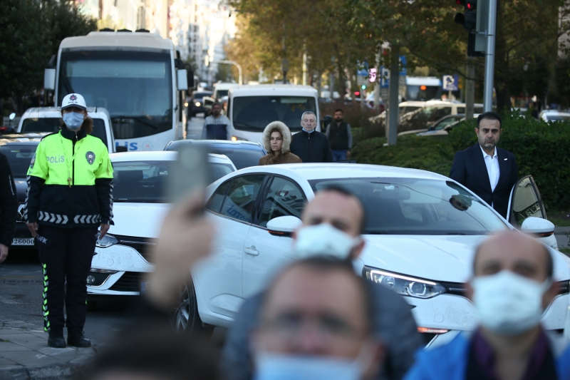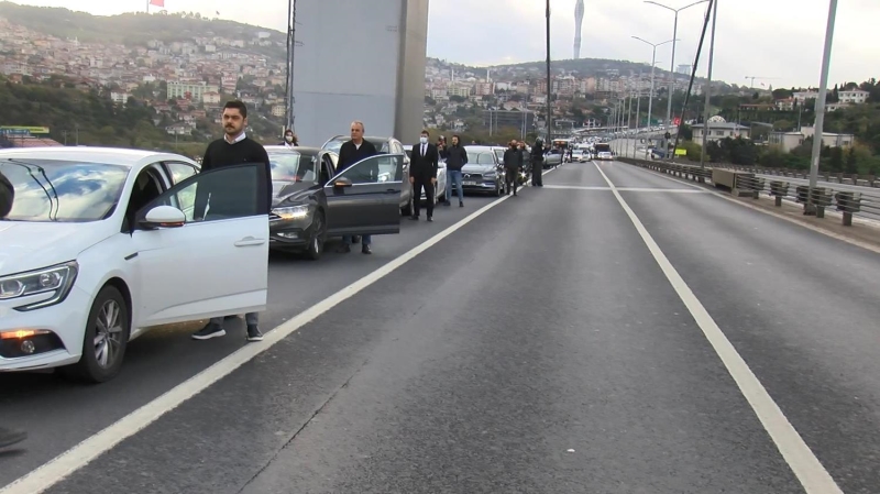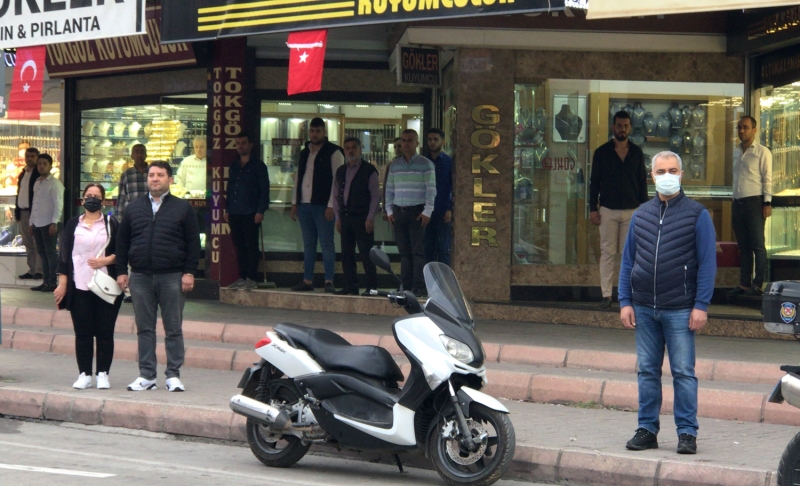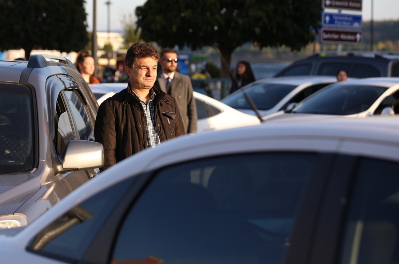 Sürücüler araçlarından inerek saygı duruşuna katıldı.