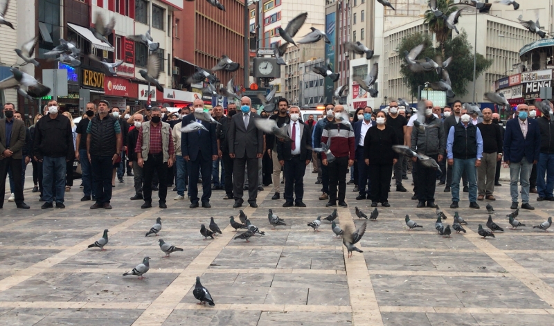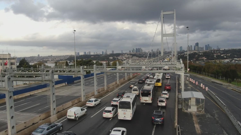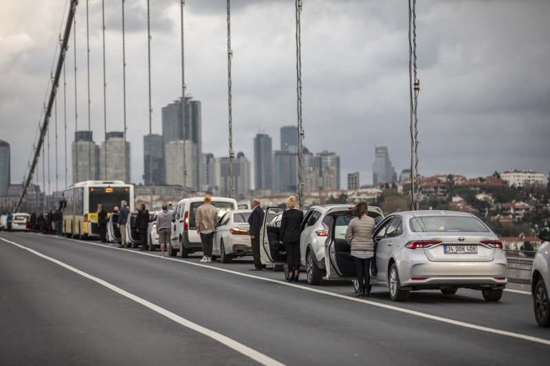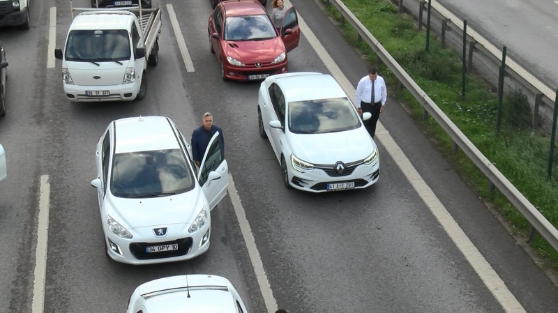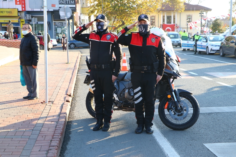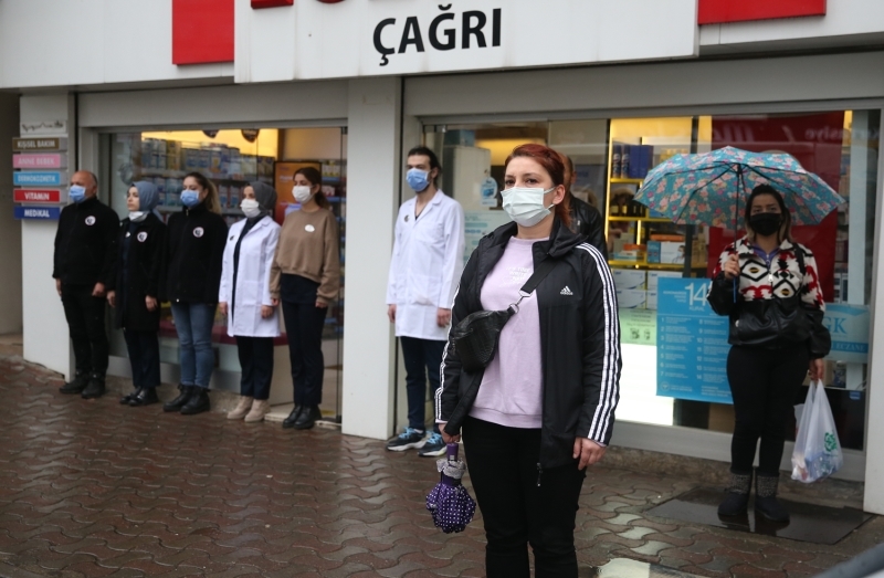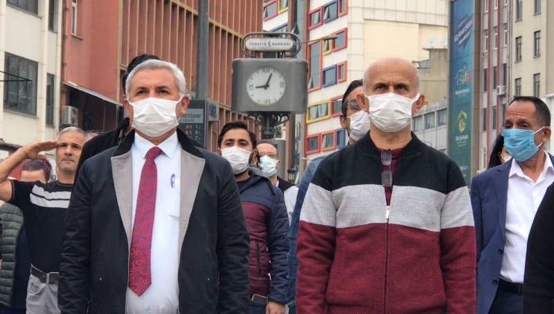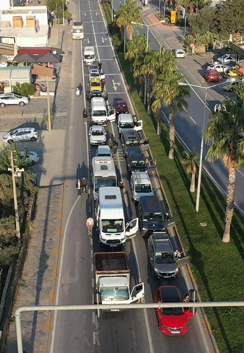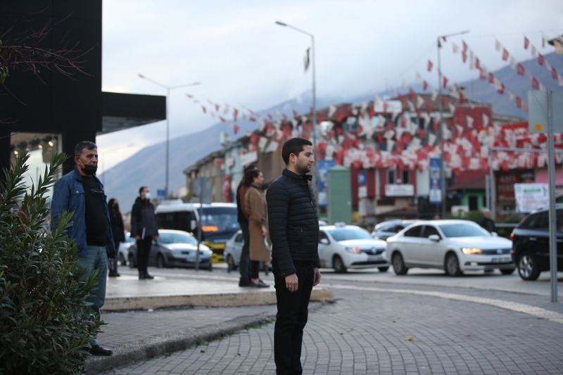 Sürücüler araçlarından inerek saygı duruşuna katıldı.