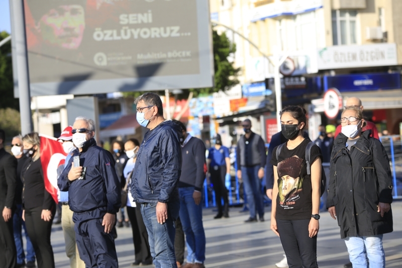 Atatürk'ün ebediyete intikal ettiği saat olan 09.05'te sirenlerin çalmasıyla başkentin cadde ve sokaklarında vatandaşlar saygı duruşunda bulundu.