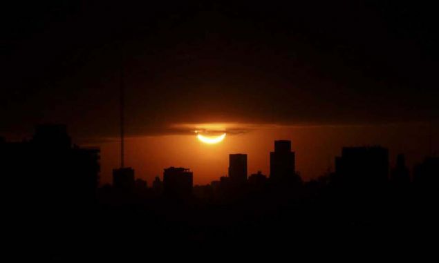 Ülkenin başkenti Buenos Aires'te, kapalı hava nedeniyle net görülmeyen tutulmayı izlemek isteyenler yüksek yerleri tercih etti.