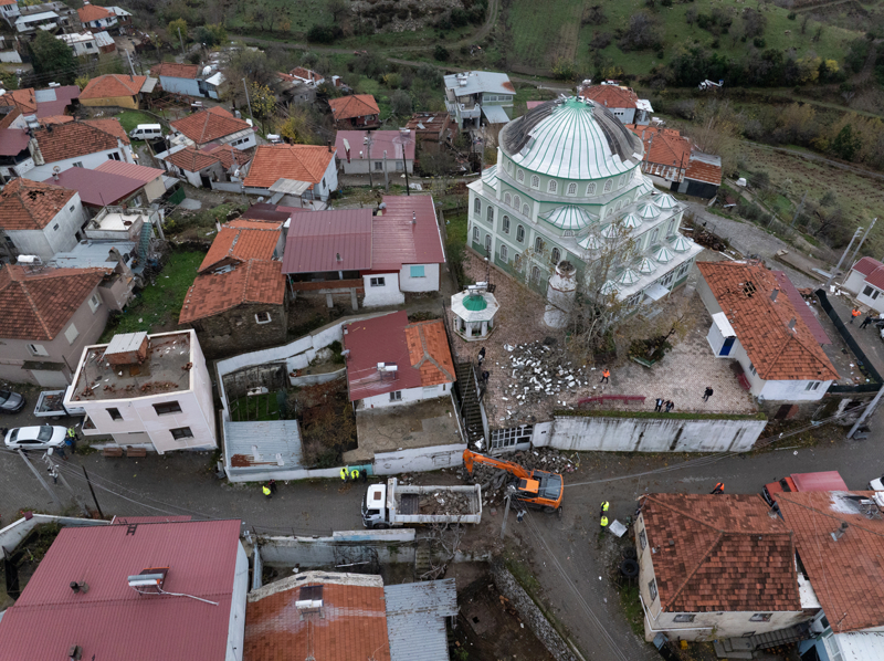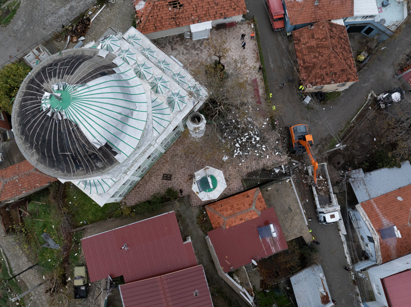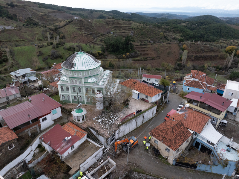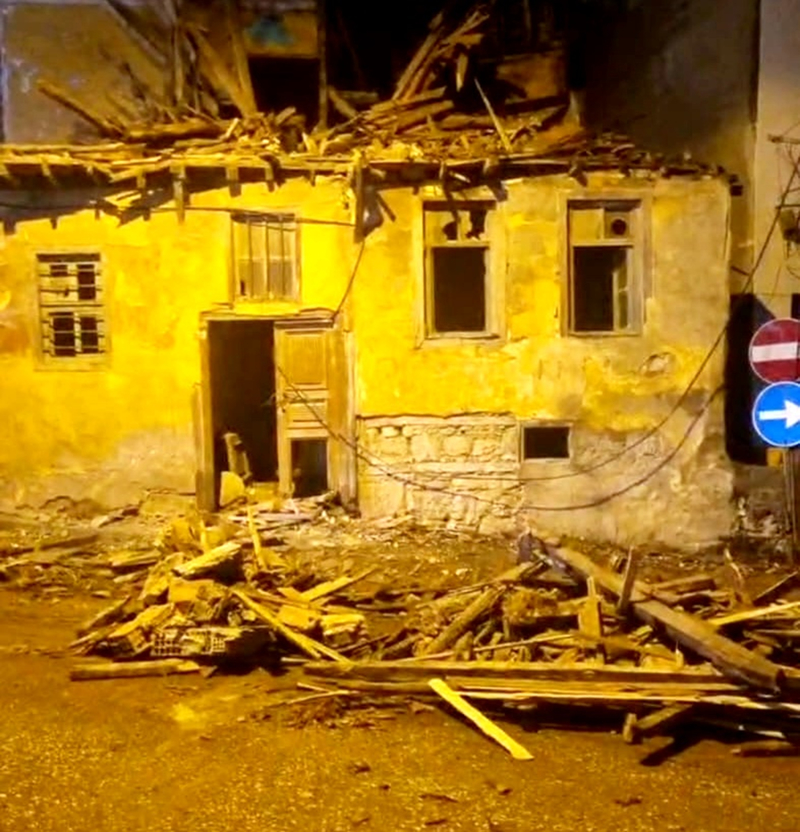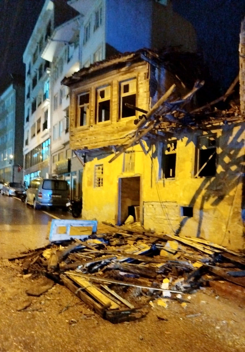 Çanakkale'nin Gelibolu ilçesinde şiddetli yağış nedeniyle kullanılmayan binanın bir bölümü yıkıldı.
