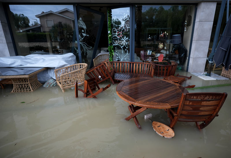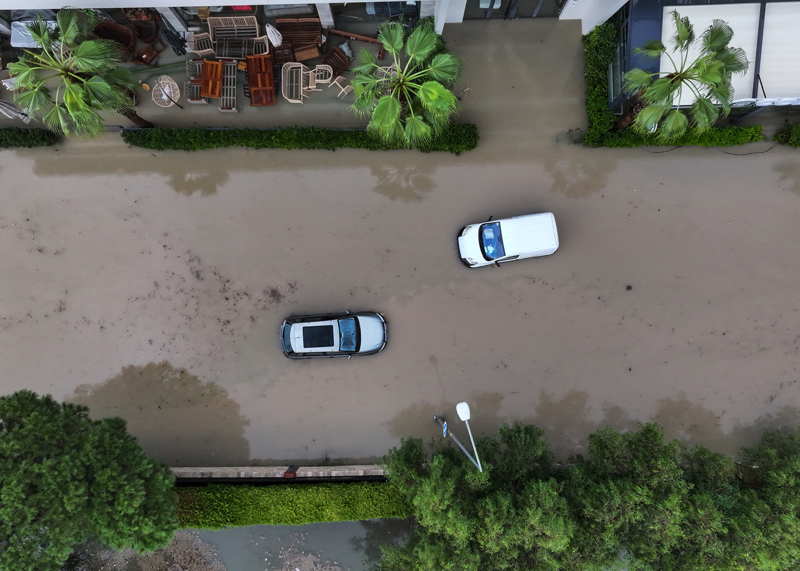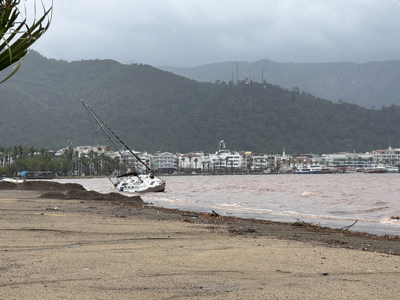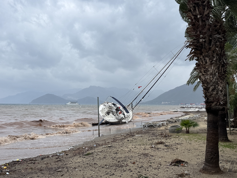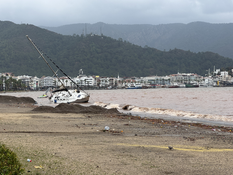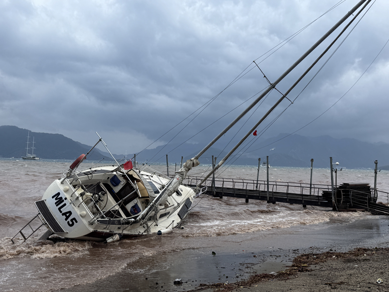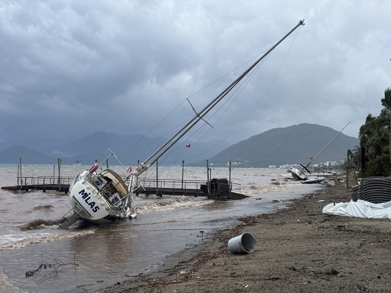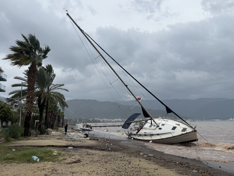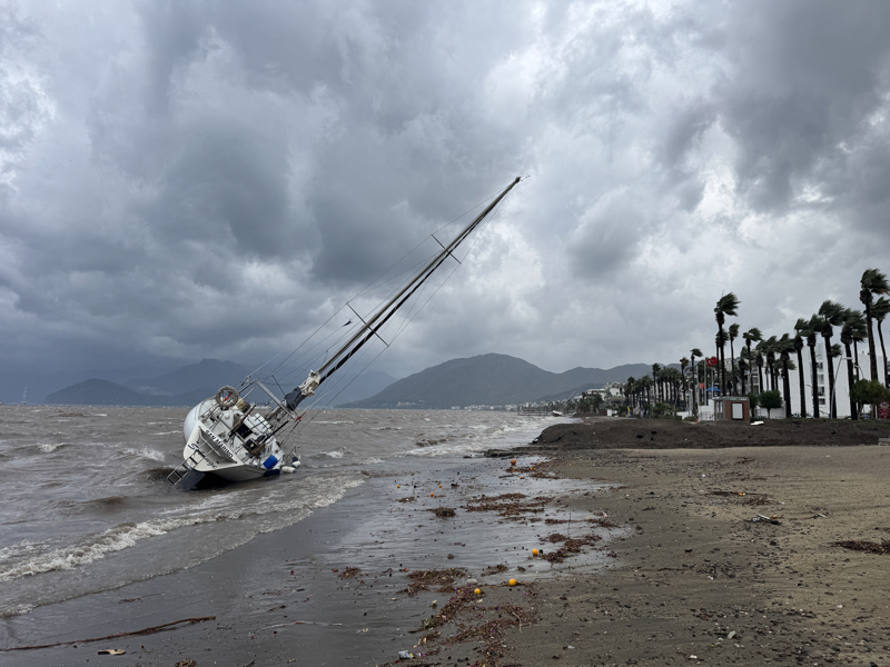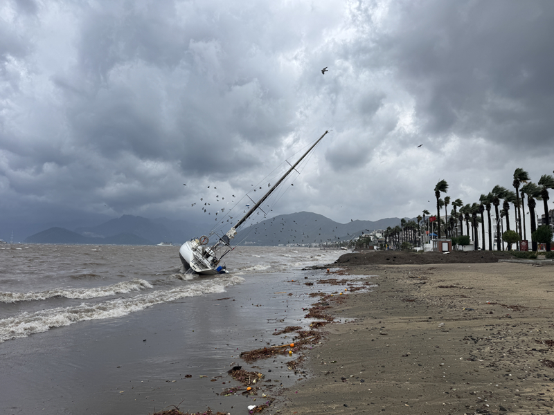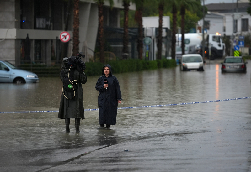İzmir'in Çeşme ilçesinde kuvvetli sağanak nedeniyle cadde ve sokaklar göle döndü. Çeşme Belediyesi ekipleri, tıkanan rögar kapaklarını açarak suyu tahliye etmek için çalışma başlattı.
