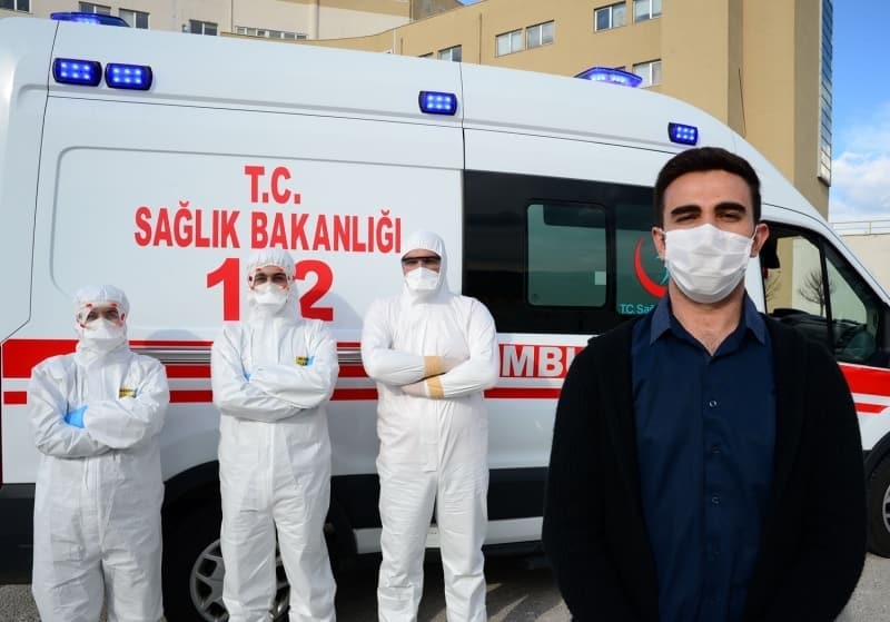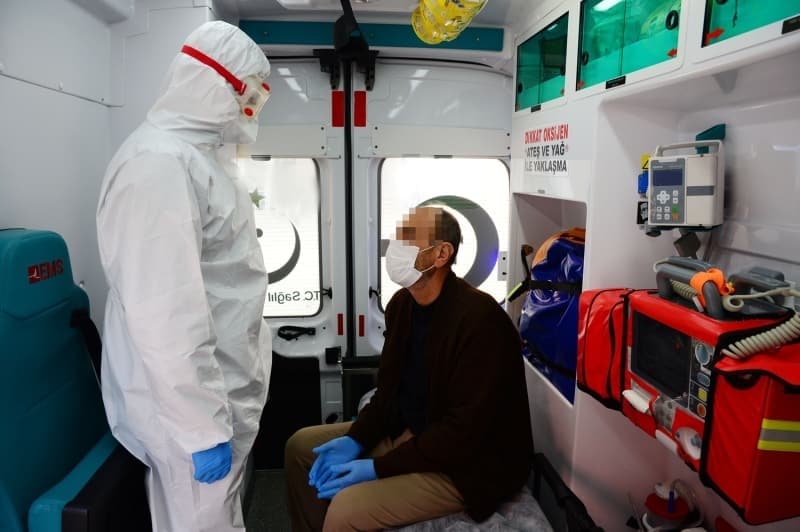 'Bu süreçte ailemizden ayrı kalıyoruz. Vakalara tam teçhizatlı koruyucu giysi tulumu giyip eldiven, maske ve gözlüklerimizi takarak gidiyoruz. Tulumların içerisinde yaşamak biraz zor oluyor ama alıştık. Bugünkü vakamız ise 64 yaşında 10-15 gündür öksürüğü ve ateşi olan bir vatandaşımız. Hastamızı hastaneye ulaştırdık. Bu salgın başladığından beri yaşamımızı bu tulumların içine sığdırmış şekilde yaşıyoruz.'