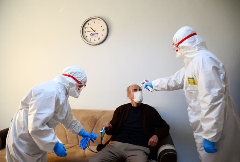 Hastalara müdahalede tedbir amacıyla tulum giyen, maske, yüz koruyucu siperlik, gözlük ve eldiven takan sağlık çalışanları, vakaların ilk olarak ateşlerini ölçerek gerekli bilgileri aldıktan sonra Kovid-19 şüphesi bulunanları en kısa sürede salgın hastanesine taşıyor.