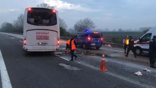 Öte yandan kaza nedeniyle yolda ulaşım, bir süre tek şeritten sağlandı.