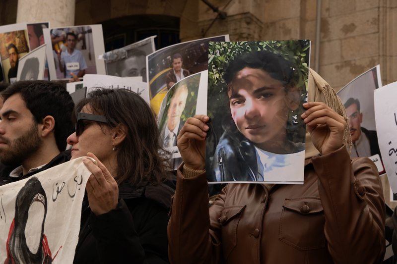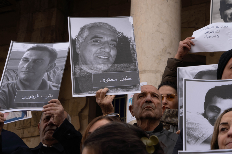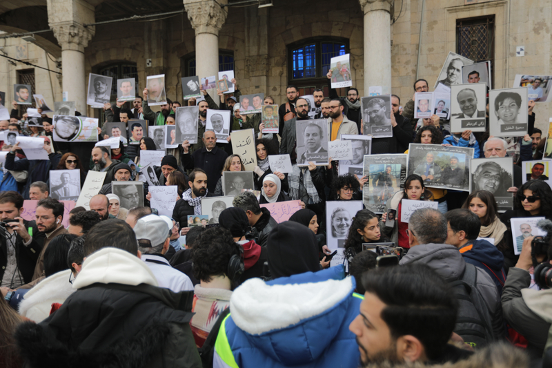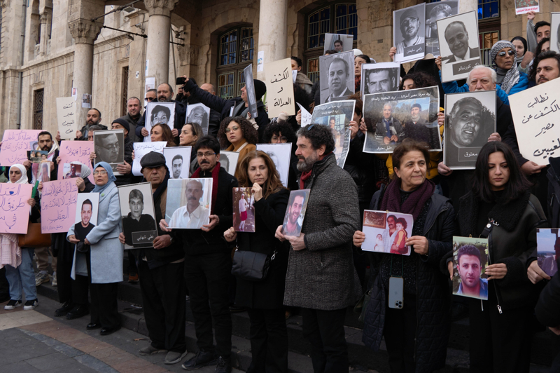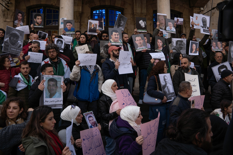 Aileler, Mart 2011'de başlayan iç savaşta alıkonulan yakınlarının akıbetini öğrenmek için Şam'daki tarihi Hicaz Tren Garı önünde bir araya geldi.