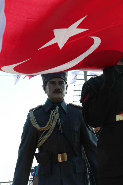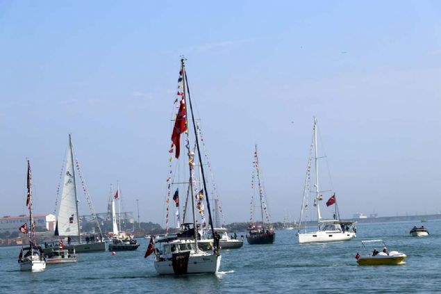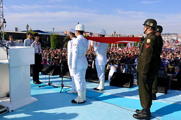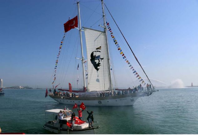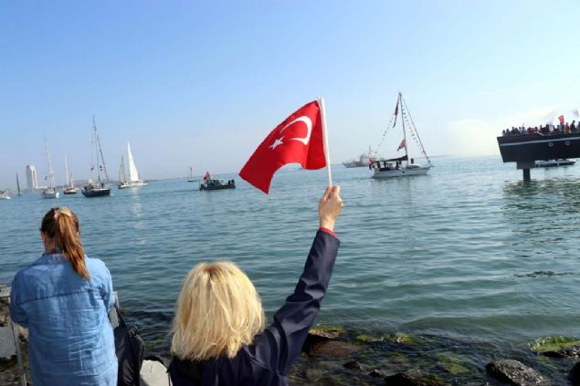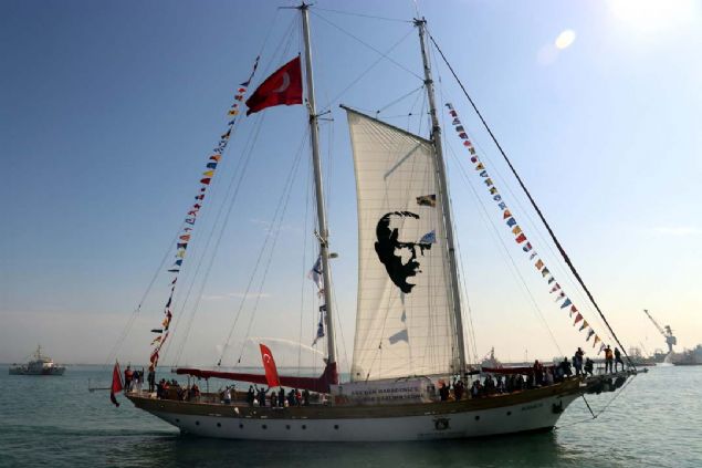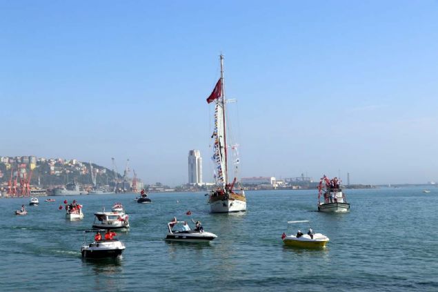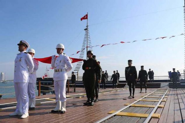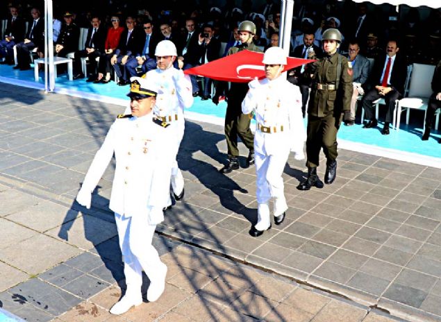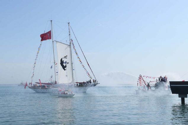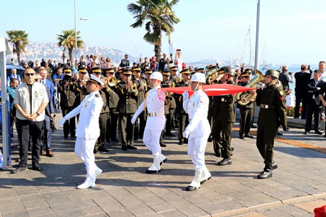 Kutlamalarda Atatürk ve silah arkadaşlarını temsilen Tütün İskelesi'nden karaya Türk bayrağı çıkarıldı.